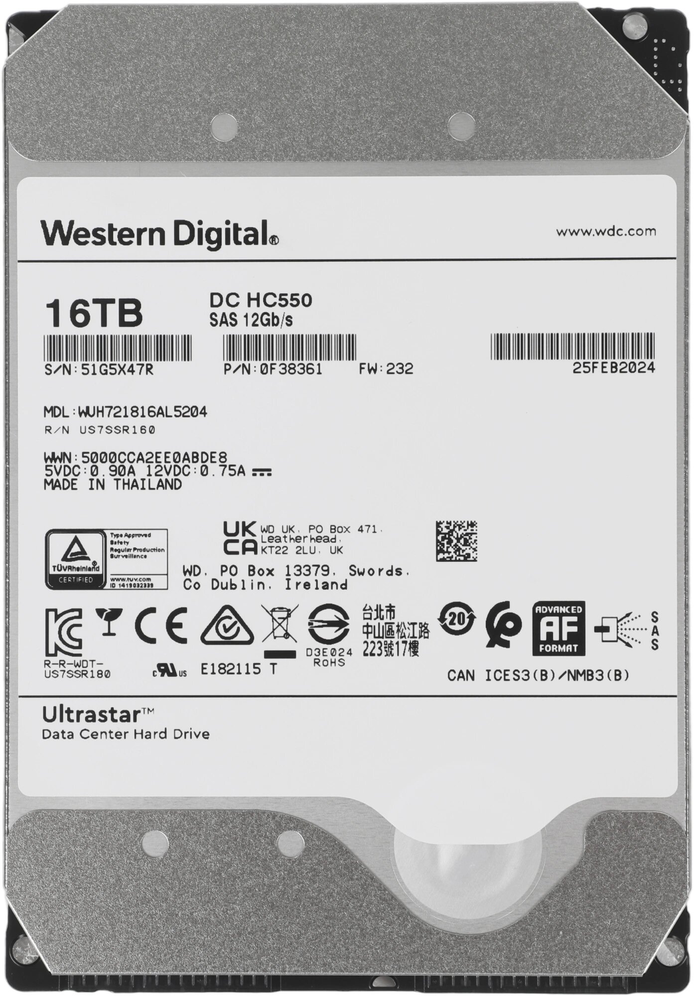 Купить Жесткий диск WD SAS 3.0 16TB 0F38361 WUH721816AL5204 Ultrastar DC HC550 (7200rpm) 512Mb 3.5"