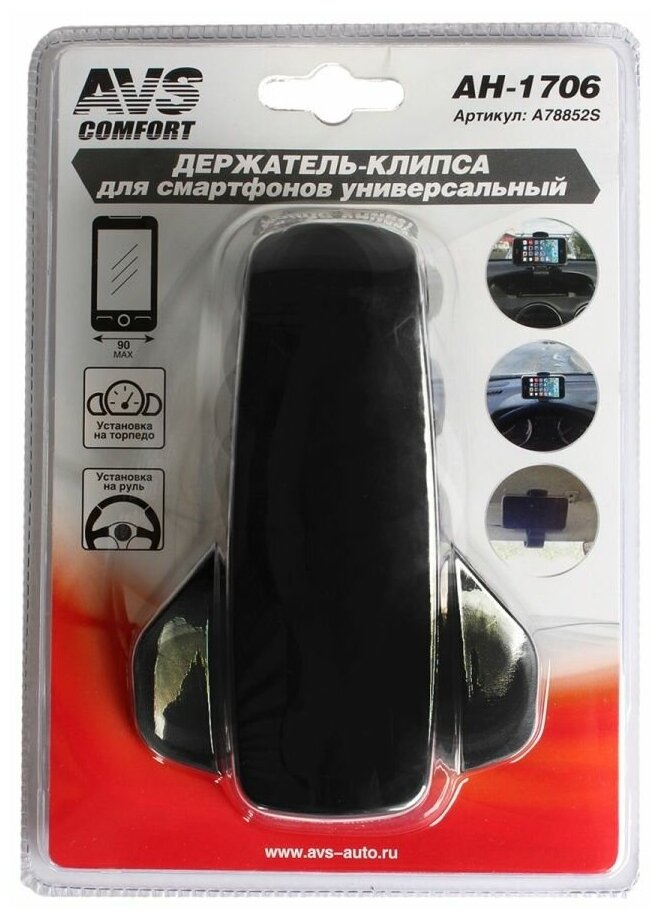 AVS A78852S Держатель телефона/КПК/GPS AVS клипса до 90 мм AH-1706