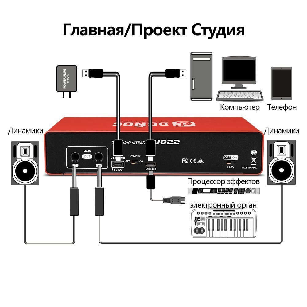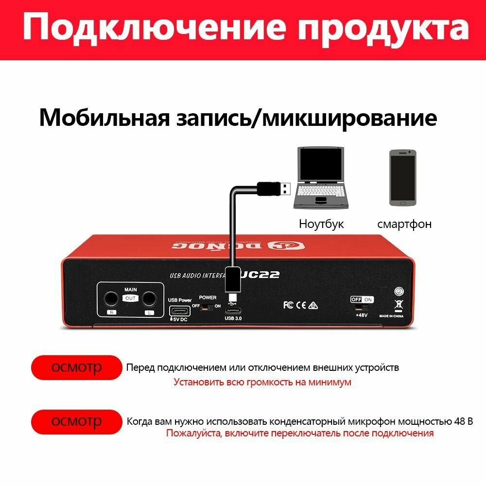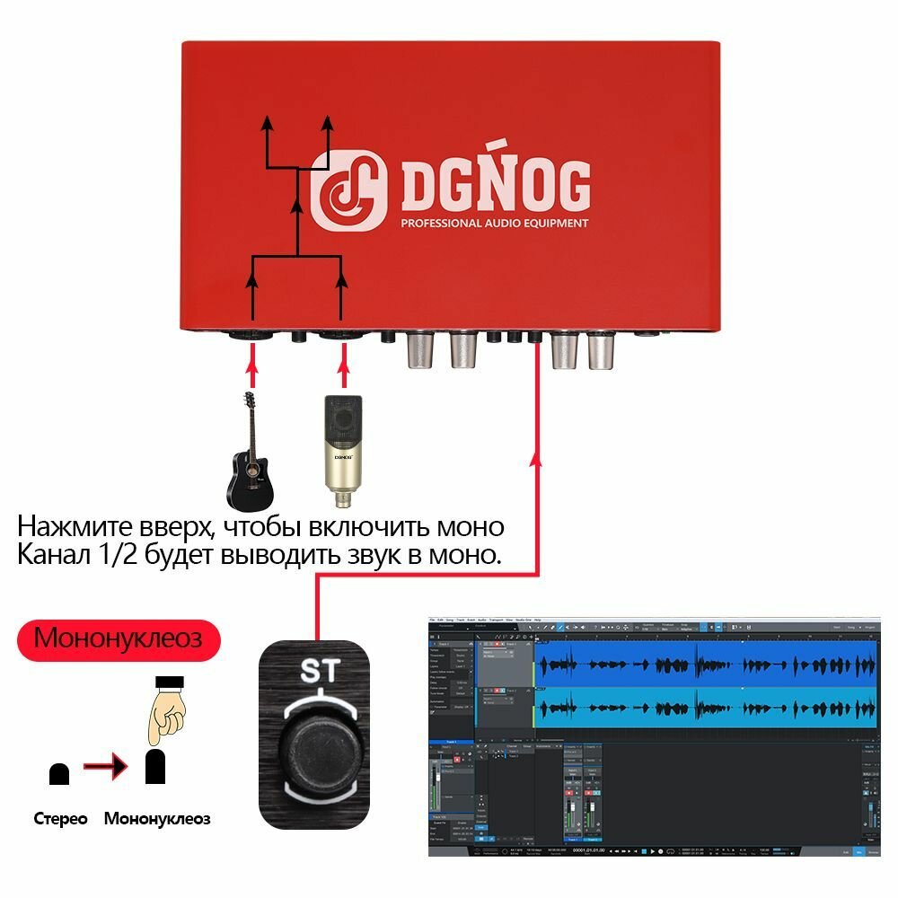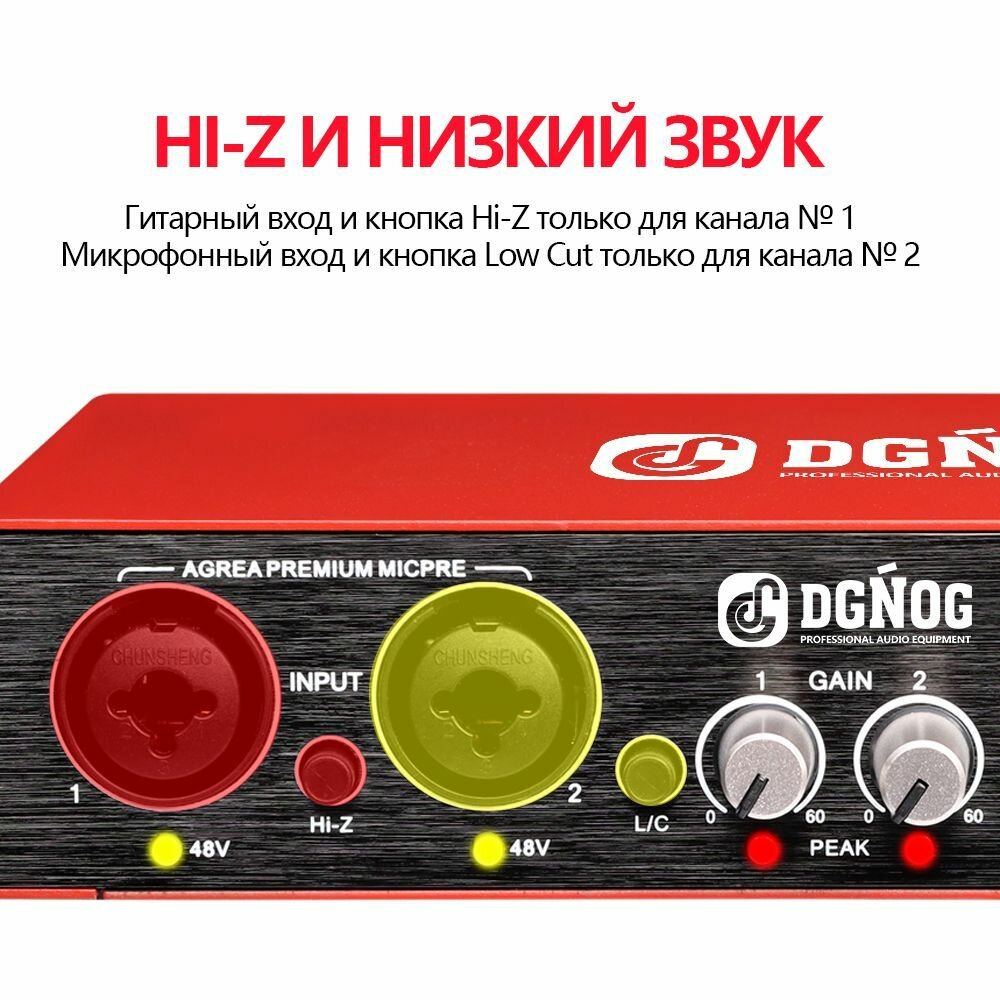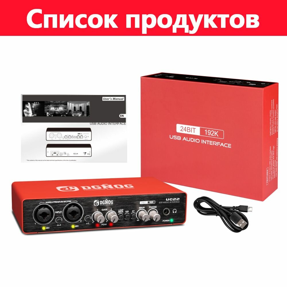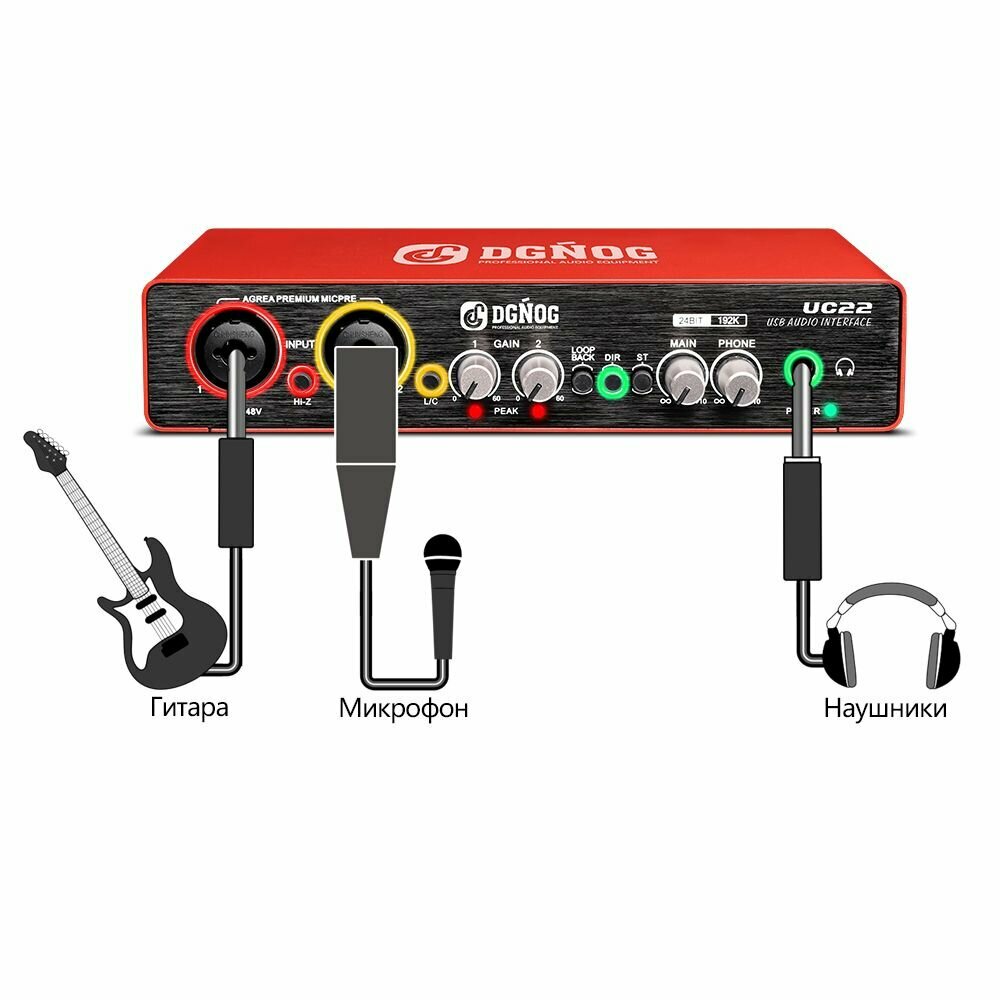Аудиоинтерфейс DGNOG UC22, 2 канала, 24бит/192кГц, фантомное питание, цифровой интересное: