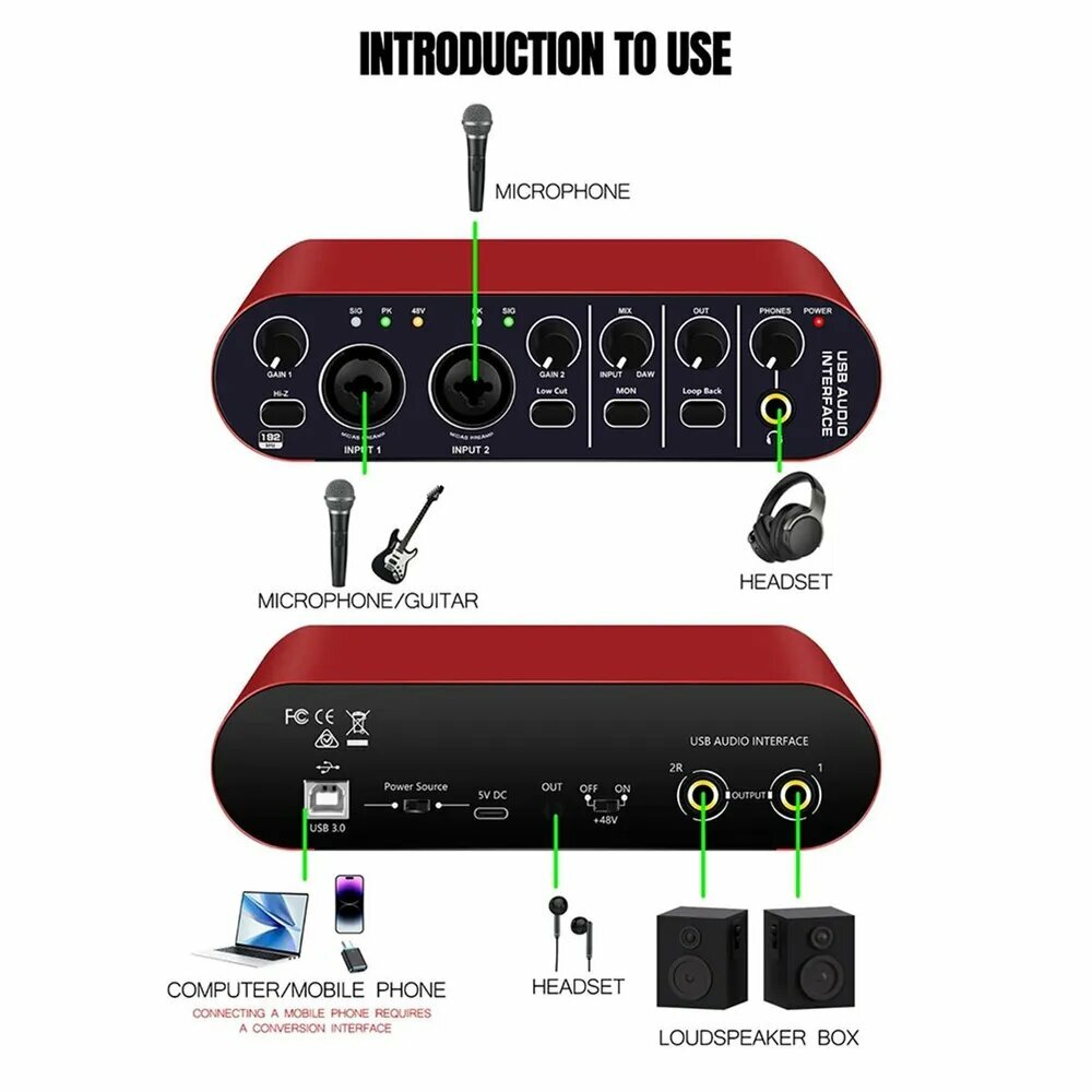 Звуковая карта внешняя MyPads для компьютера, внешний аудиоинтерфейс совместим со всеми типами устройств настройка голоса, эхо