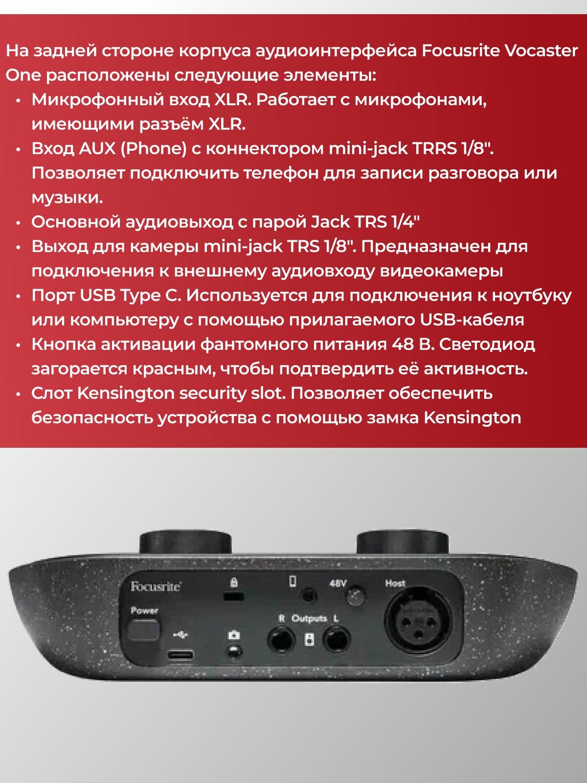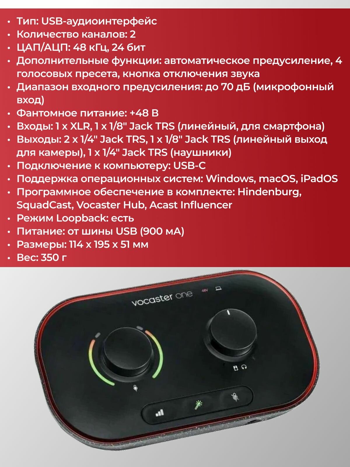 Внешняя звуковая карта с USB FOCUSRITE Vocaster One интересное:
