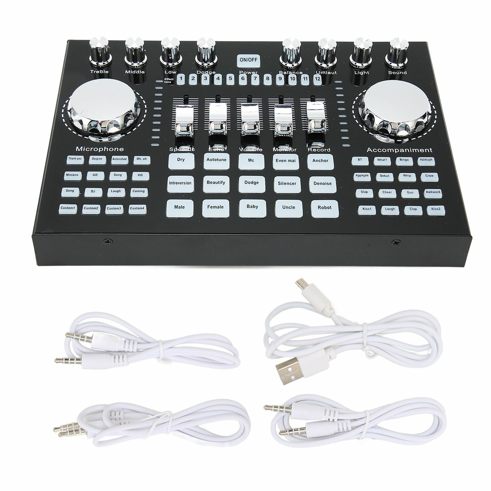 Живая звуковая карта Большая ручка Bluetooth 5.0 DSP Шумоподавление Мини-звуковой микшер Hi-Fi с подсветкой RGB для ПК Черный Черный интересное: