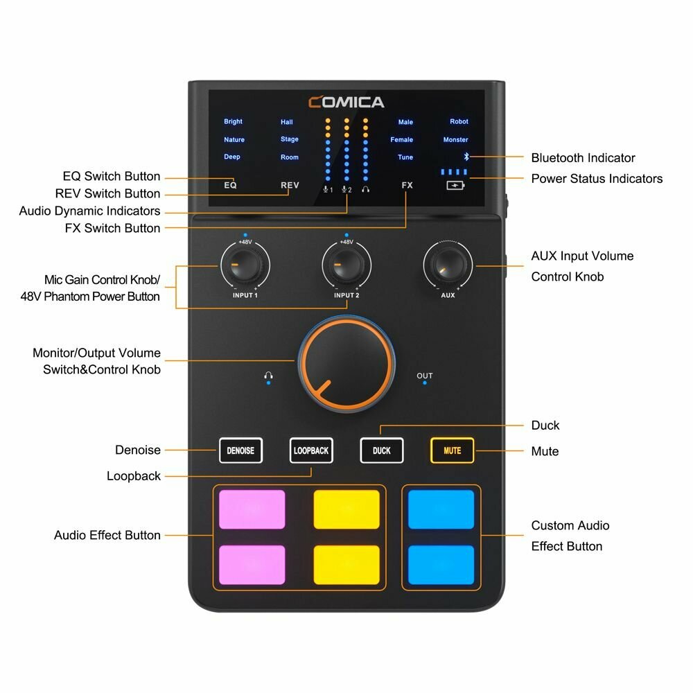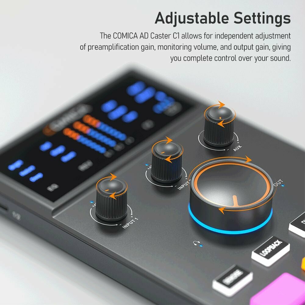 Купить COMICA AD Caster C1 Аудиомикшер USB-аудиоинтерфейс Звуковая карта с портами 3,5 мм Поддерж, Andoer