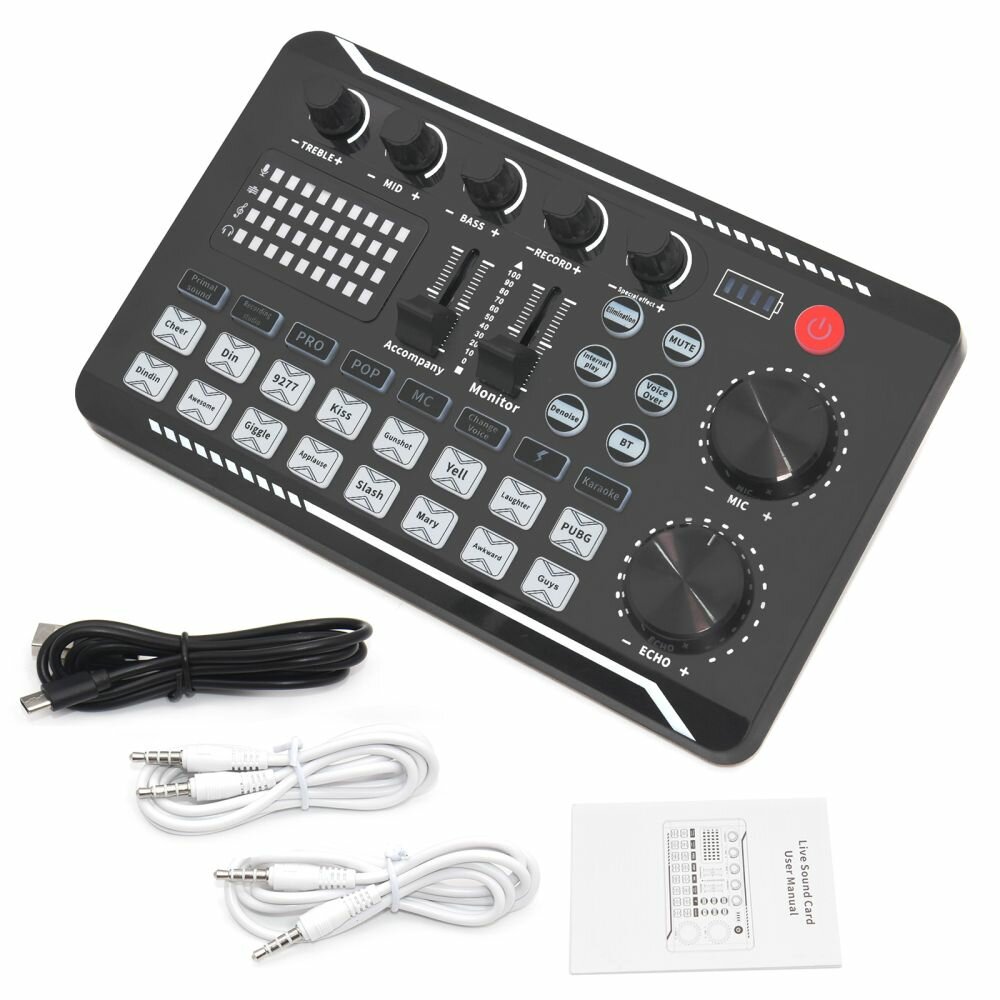 Купить Живая звуковая карта и аудиоинтерфейс с эффектами DJ-микшера, изменитель голоса, совместимый с Bluetooth, микшер