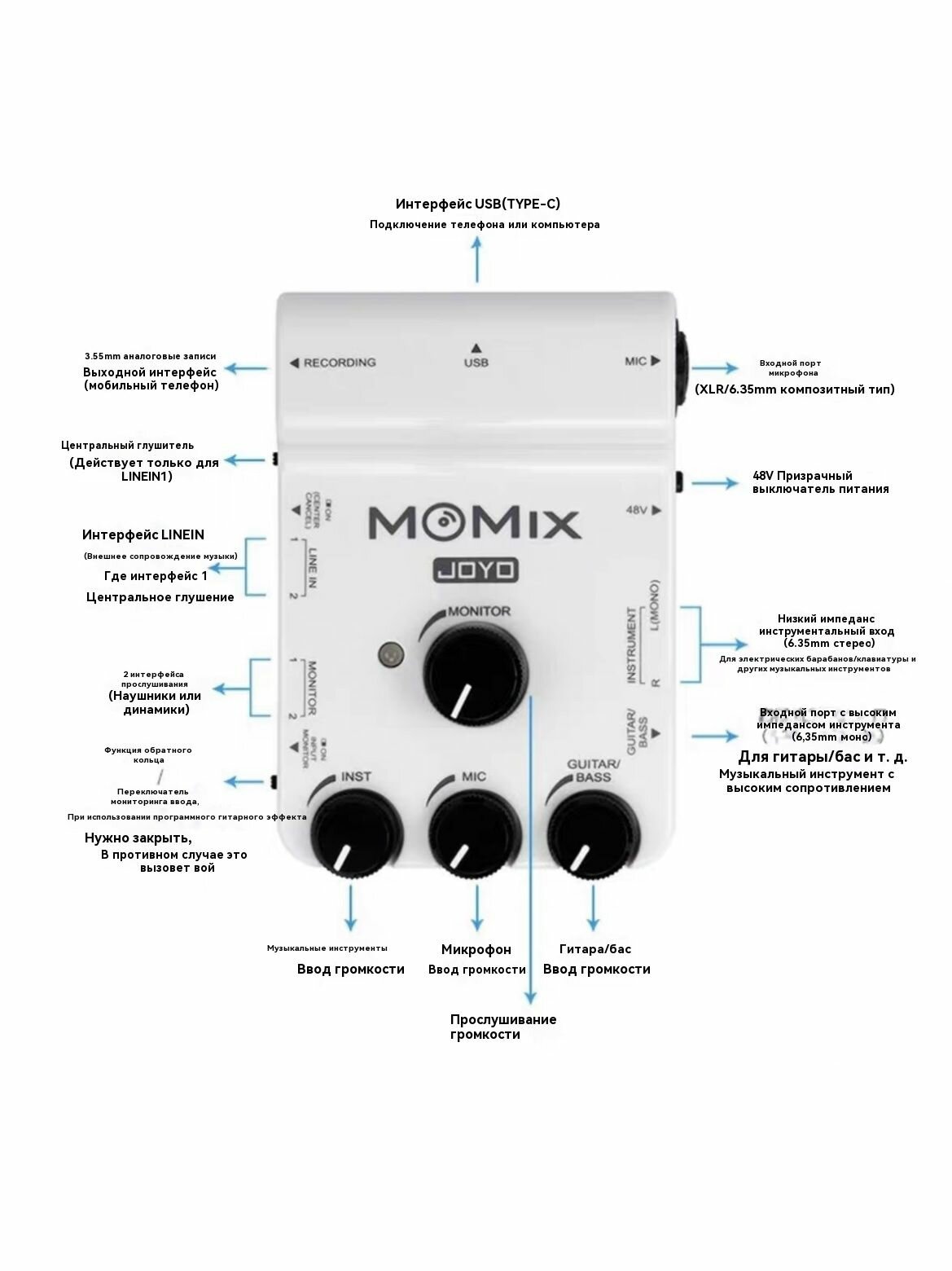 JOYO MOMIX звуковая карта микрофон гитарный усилитель живая музыка звуковая карта для записи пения аудио микшер интересное: