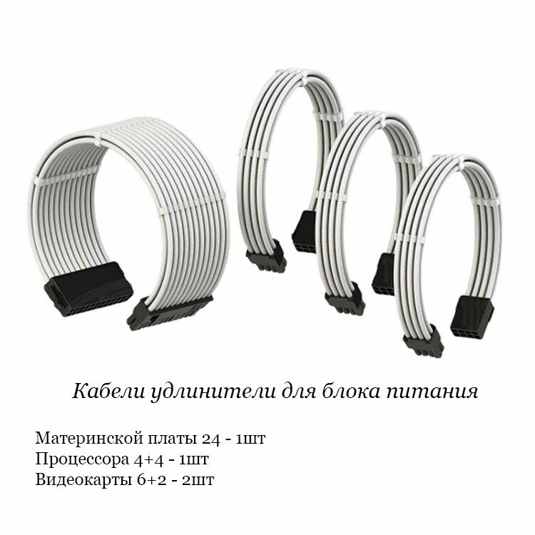Кабели для моддинга, удлинитель блока питания ПК, цвет белый, 4 кабеля (черные коннекторы) интересное: