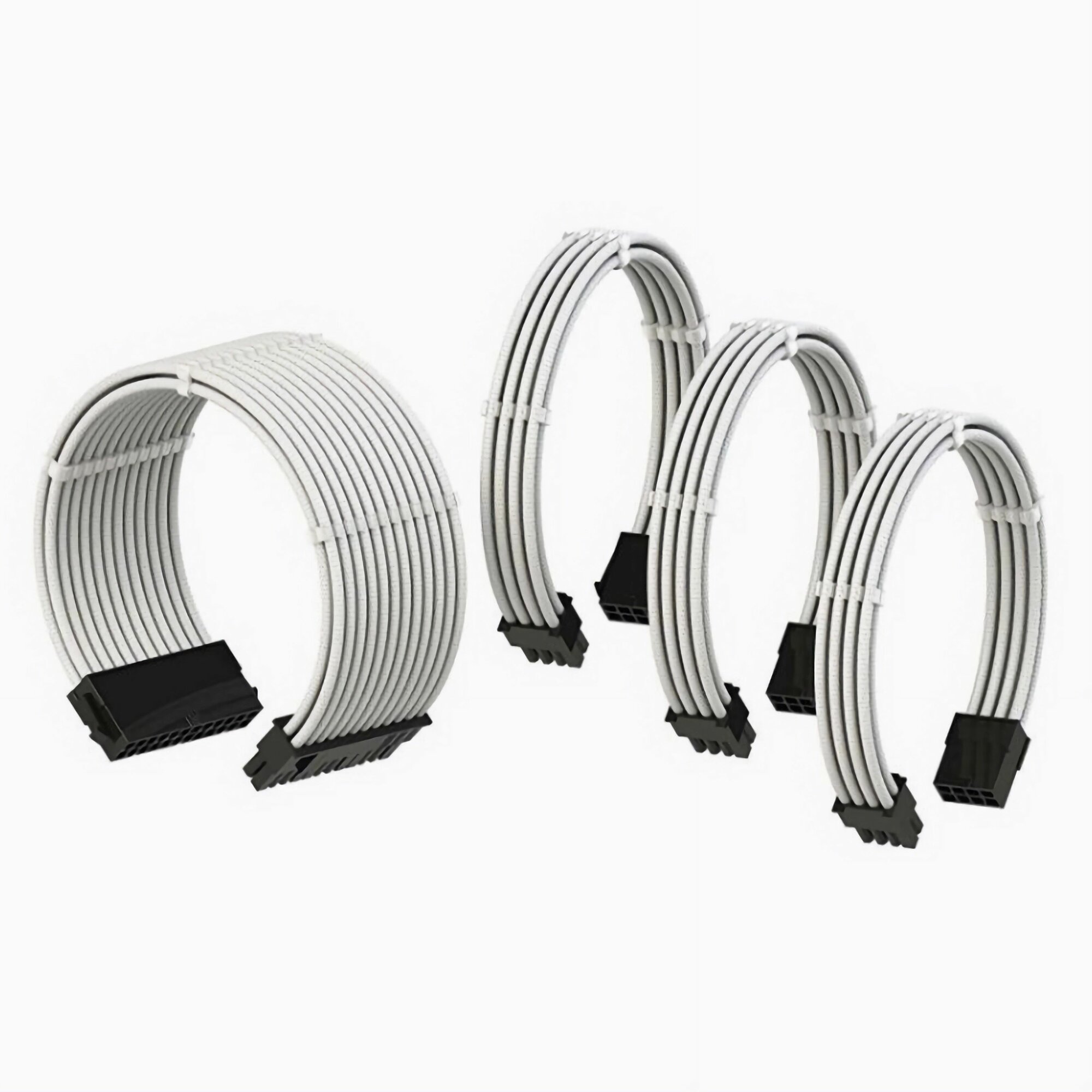 Кабели для моддинга, удлинитель блока питания ПК, цвет белый, 4 кабеля (черные коннекторы)