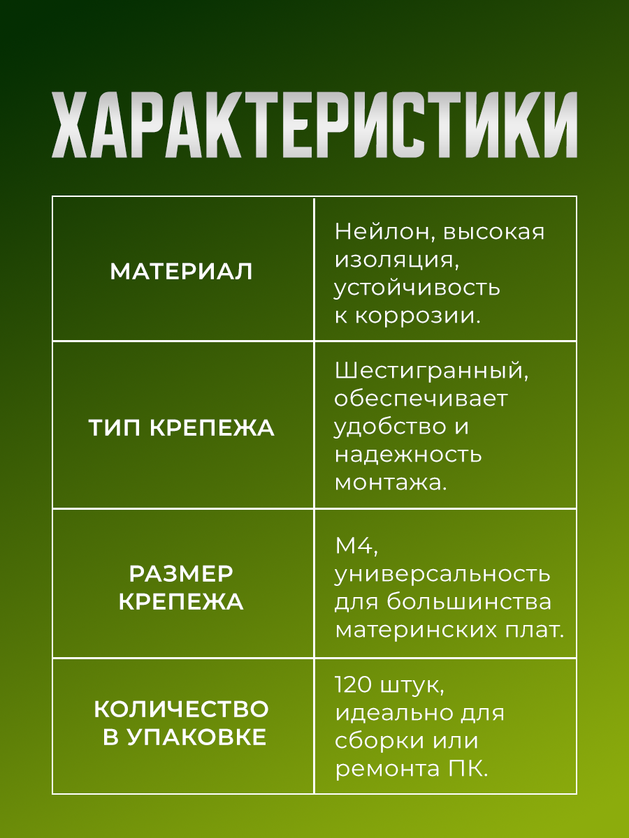 Ниже Вы можете прочитать отзывы на Набор нейлоновых стоек и гаек для материнских плат 120 штук, ознакомится с подробными характеристиками, посмотреть интересные обзоры и фотографии на Набор нейлоновых стоек и гаек для материнских плат 120 штук.