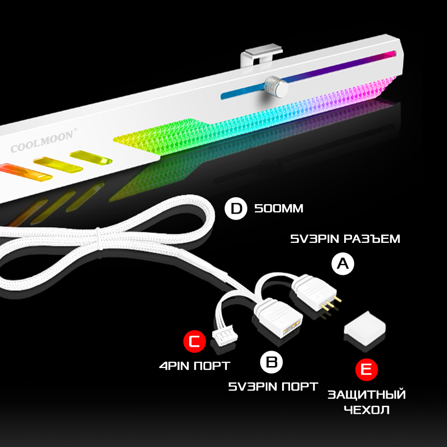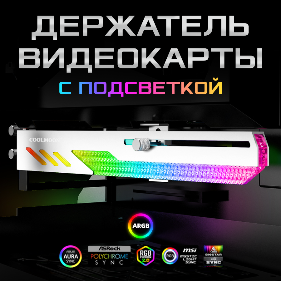 Горизонтальный держатель кронштейн COOLMOON для видеокарты NVIDIA GeForce RTX, ASUS, GIGABYTE, Intel и др, ARGB, белый интересное: