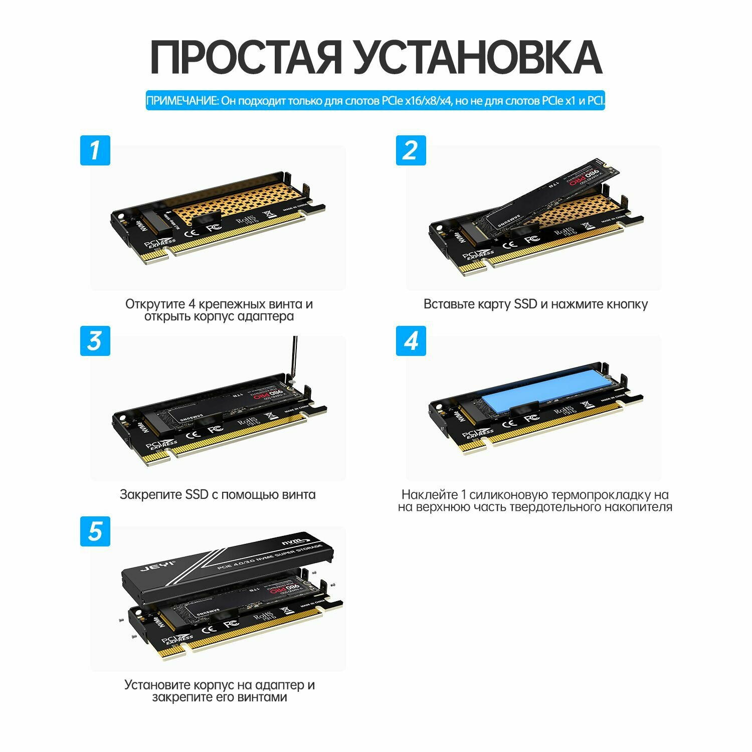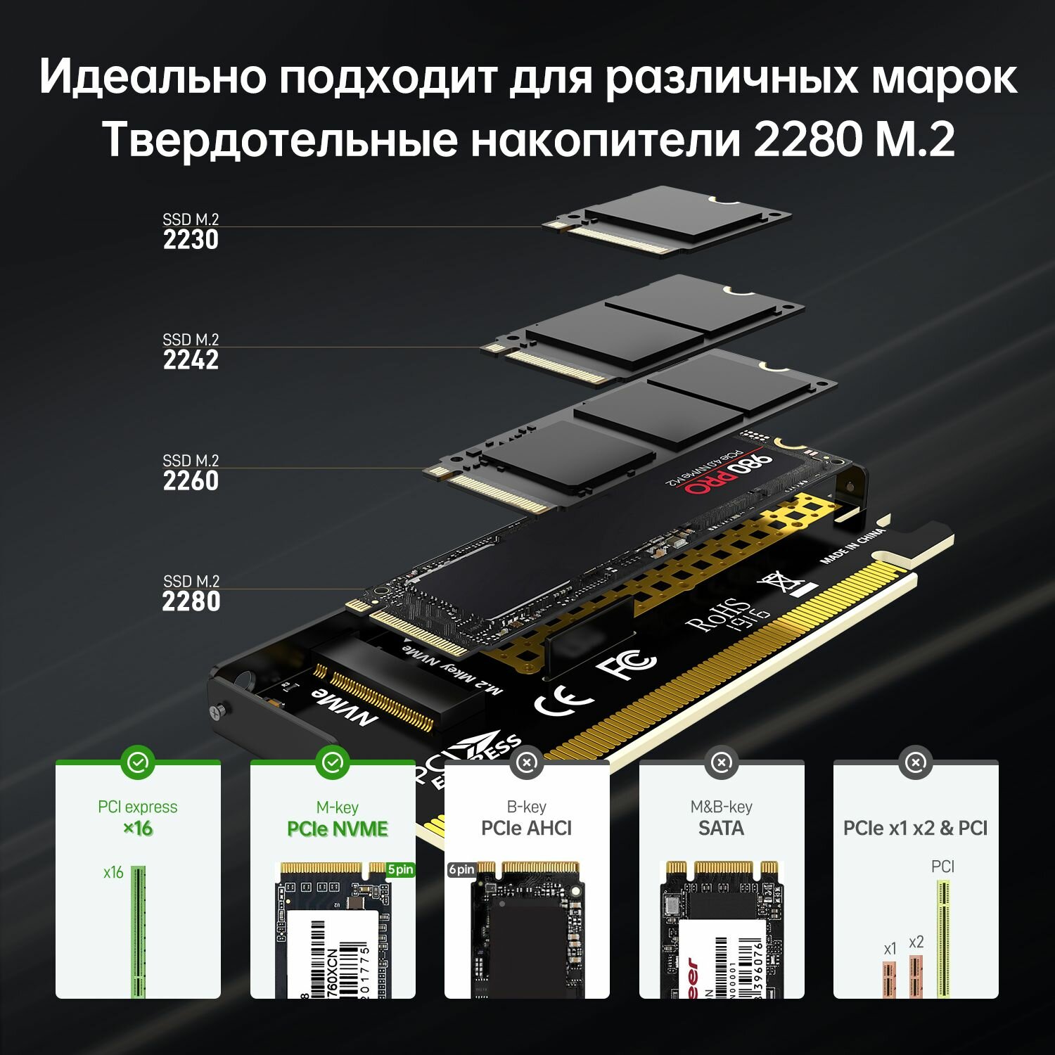 Адаптер NVMe для SSD m.2 в слот PCI-e x16, 4.0 интересное: