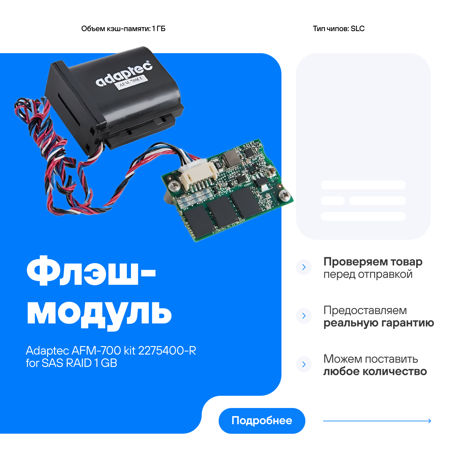 Флэш-модуль Adaptec AFM-700 kit 2275400-R for SAS RAID 1 ГБ AFM-700-CC интересное: