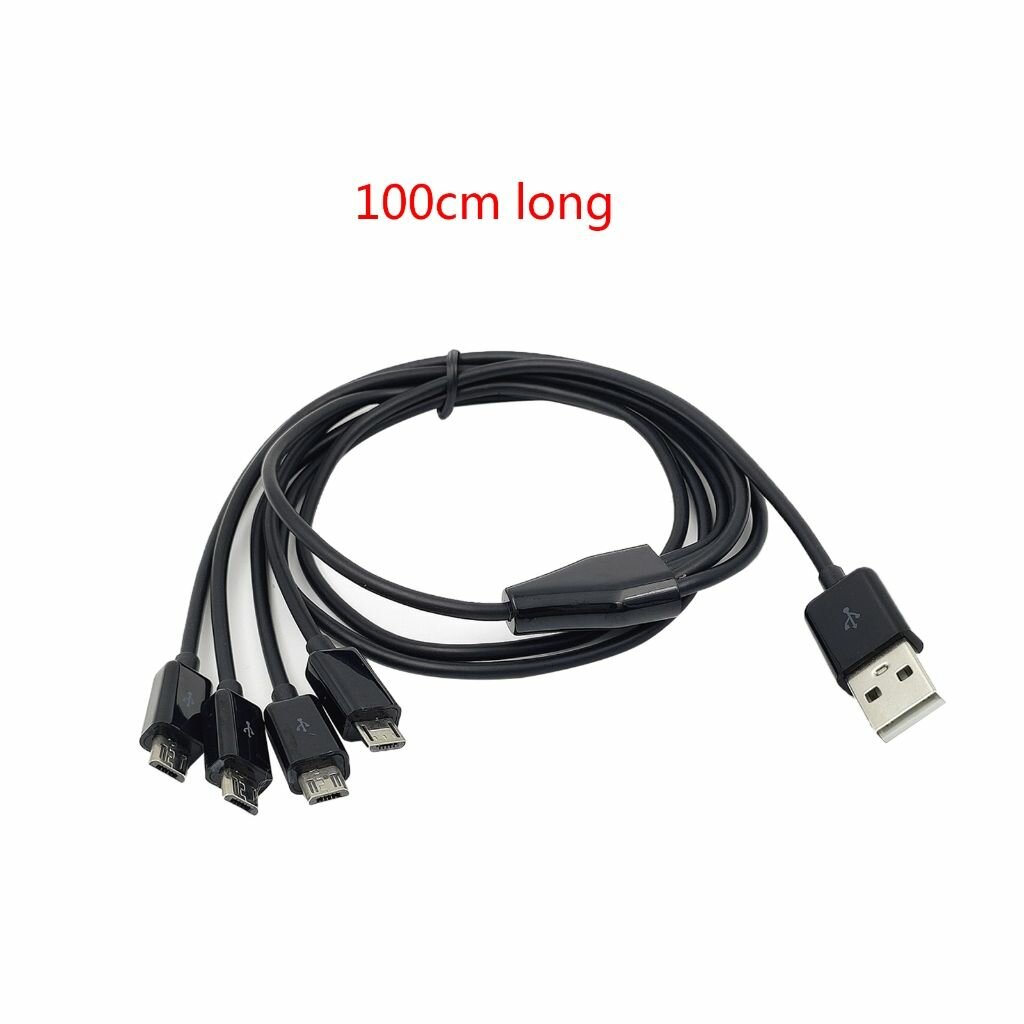 Купить 4в1 USB-разъем для микрозарядного кабеля, разветвитель, общая длина 1 метр, основная линия 75 см, ответвление 25 см