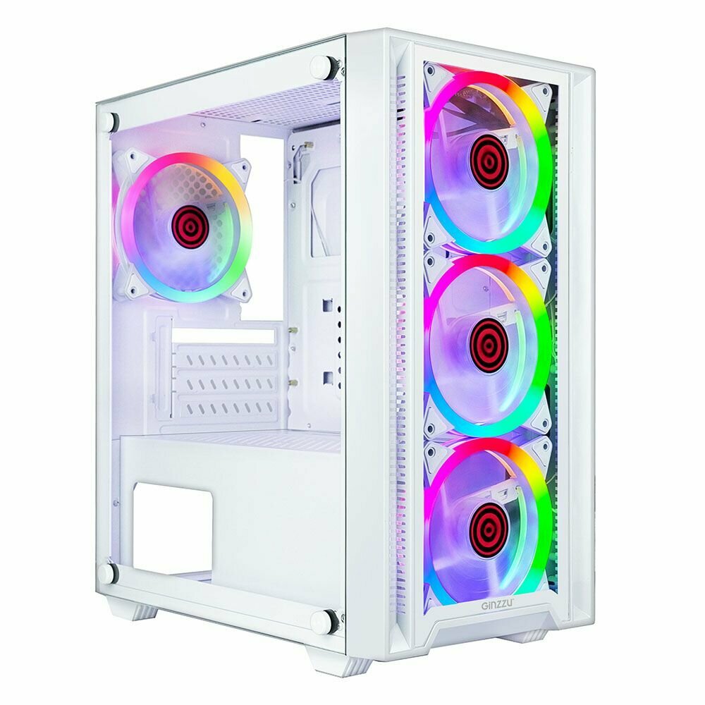 Купить Корпус Ginzzu CL620 mATX 4*12см FAN, закаленное стекло боковая и передняя панель