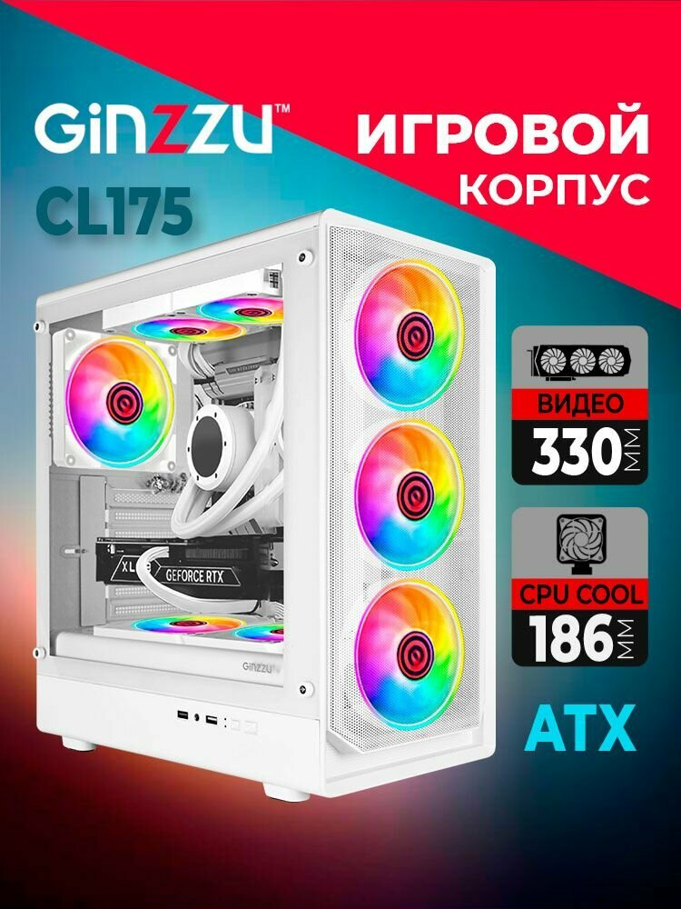 Корпус Ginzzu CL175 ATX боковая панель закаленное стекло, передняя сетка интересное: