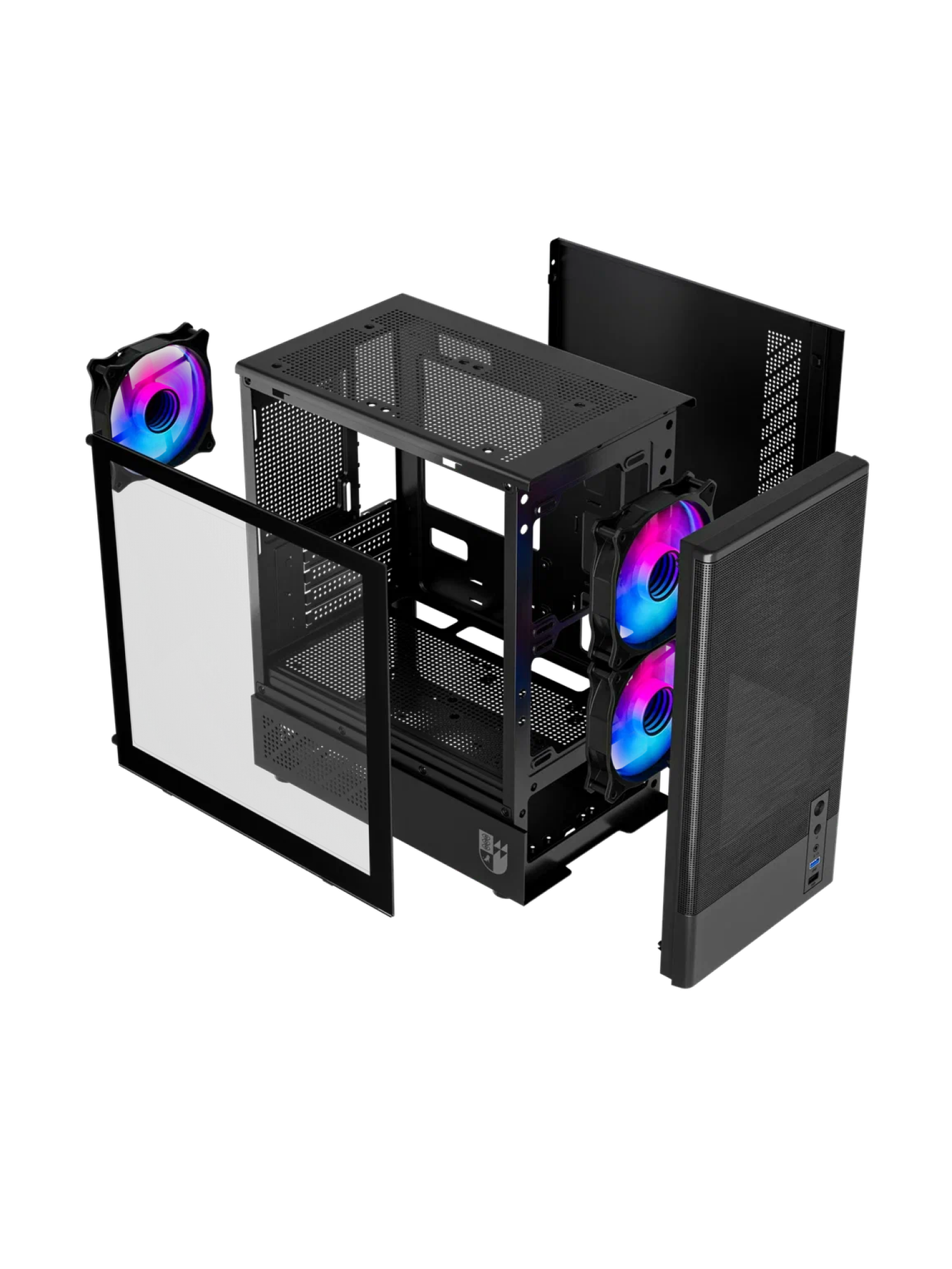 Купить Корпус Warrior Z7 + 3 ARGB вентилятора + закаленное стекло, Micro-ATX, Mini-ITX