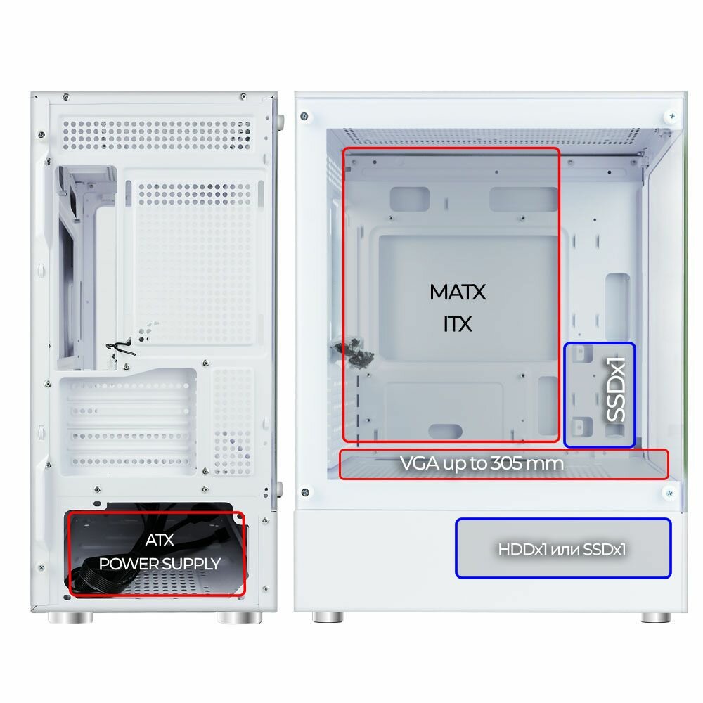 Купить Корпус Ginzzu CL480 mATX , боковая и передняя панели закаленное стекло