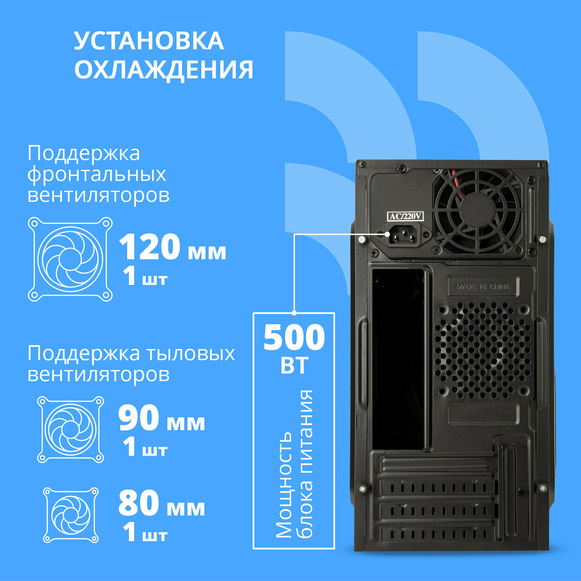 Cbr Корпус Корпус mATX Minitower MX12, c БП PSU-ATX500-08EC 500W 80mm , 1 USB 3.0, 2 USB 2.0, HD Audio+Mic, Black PCC-MATX-MX12-500W2 интересное:
