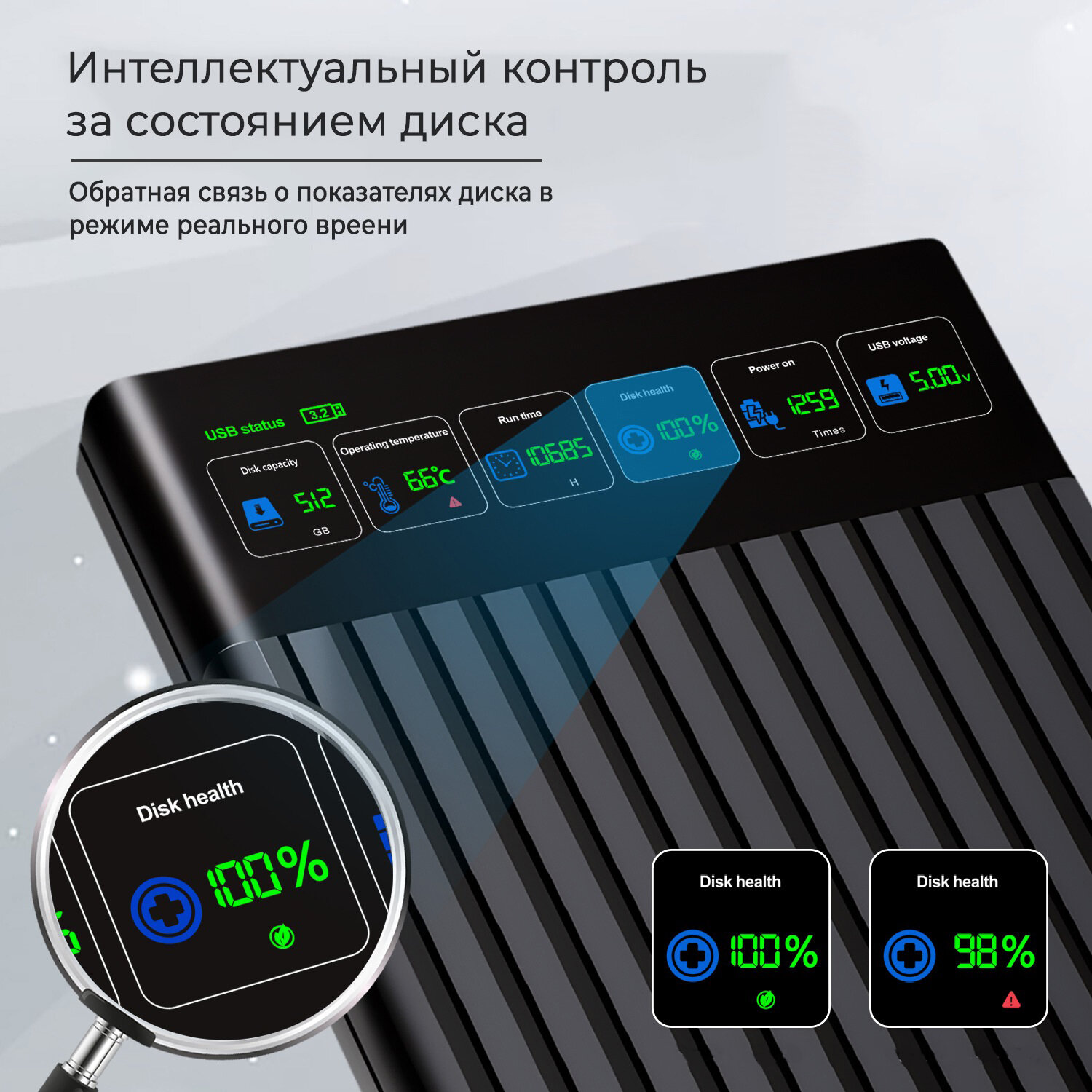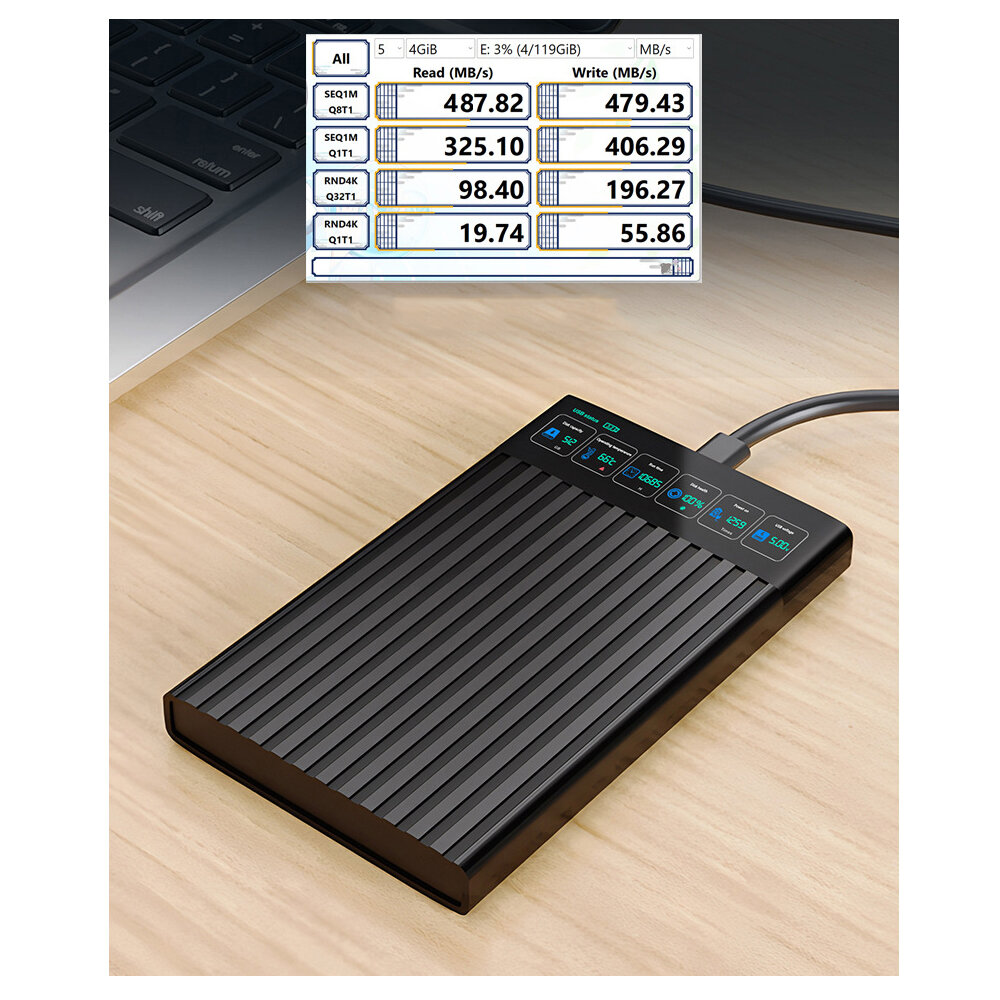 Внешний корпус жесткого диска (бокс) NVMe, USB 3.2 Gen2, алюминиевый, Интеллектуальный цифровой дисплей