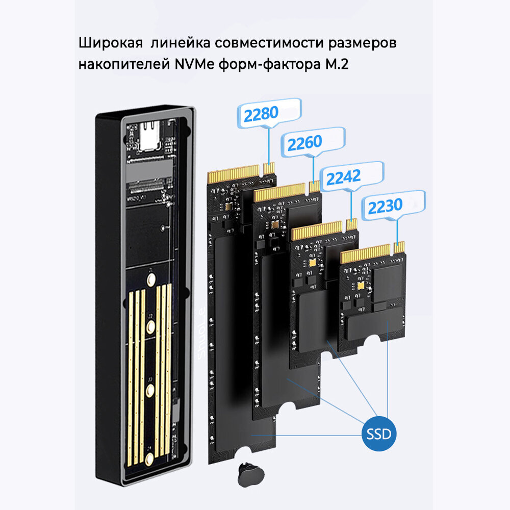 Купить Внешний корпус жесткого диска (бокс) NVMe, USB 3.2 Gen2, алюминиевый, Интеллектуальный цифровой дисплей