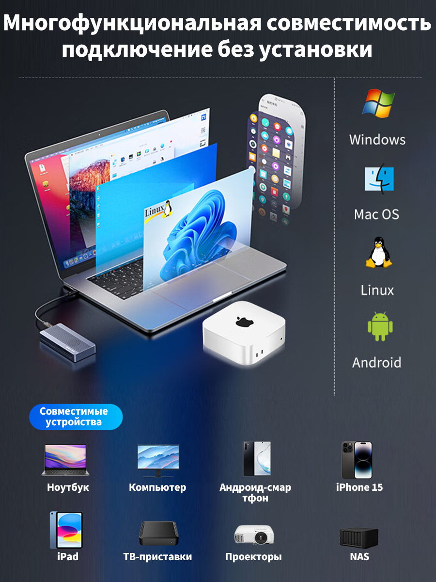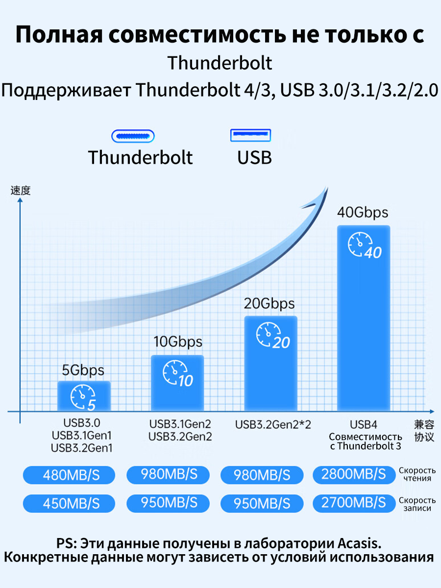 До 8 ТБ ACASIS TBU405pro USB4/Thunderbolt4 40 Гбит/с M.2 NVMe 2280КорпусдляSSDнакопителя интересное: