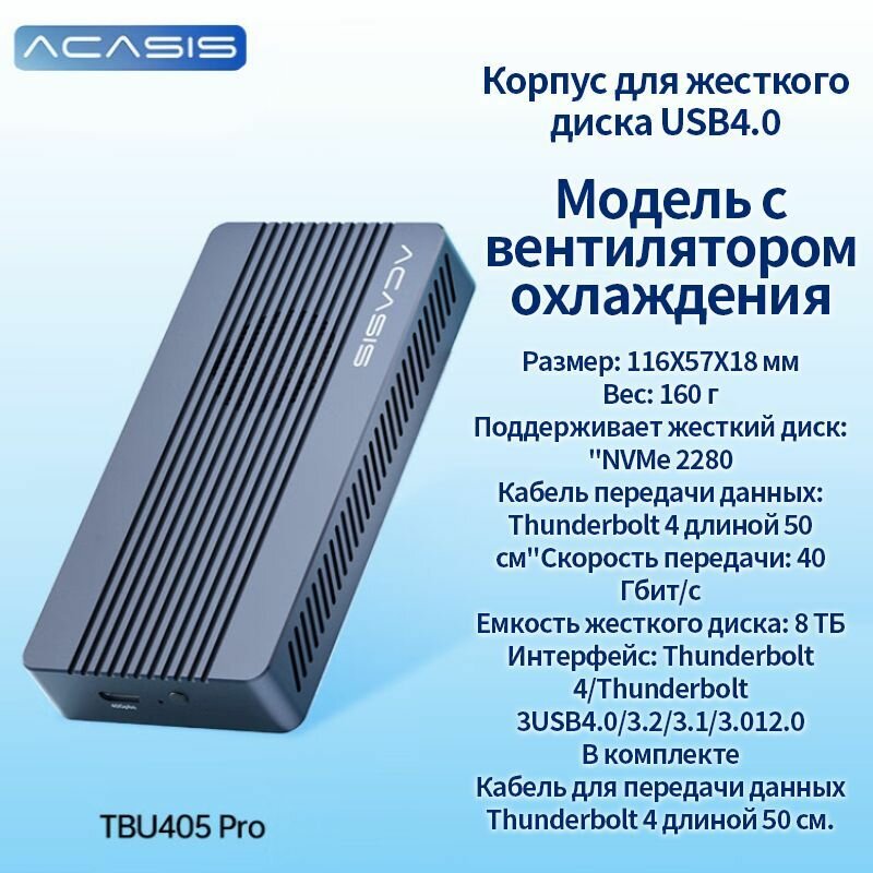 Ниже Вы можете прочитать отзывы на До 8 ТБ ACASIS TBU405pro USB4/Thunderbolt4 40 Гбит/с M.2 NVMe 2280КорпусдляSSDнакопителя, ознакомится с подробными характеристиками, посмотреть интересные обзоры и фотографии на До 8 ТБ ACASIS TBU405pro USB4/Thunderbolt4 40 Гбит/с M.2 NVMe 2280КорпусдляSSDнакопителя.