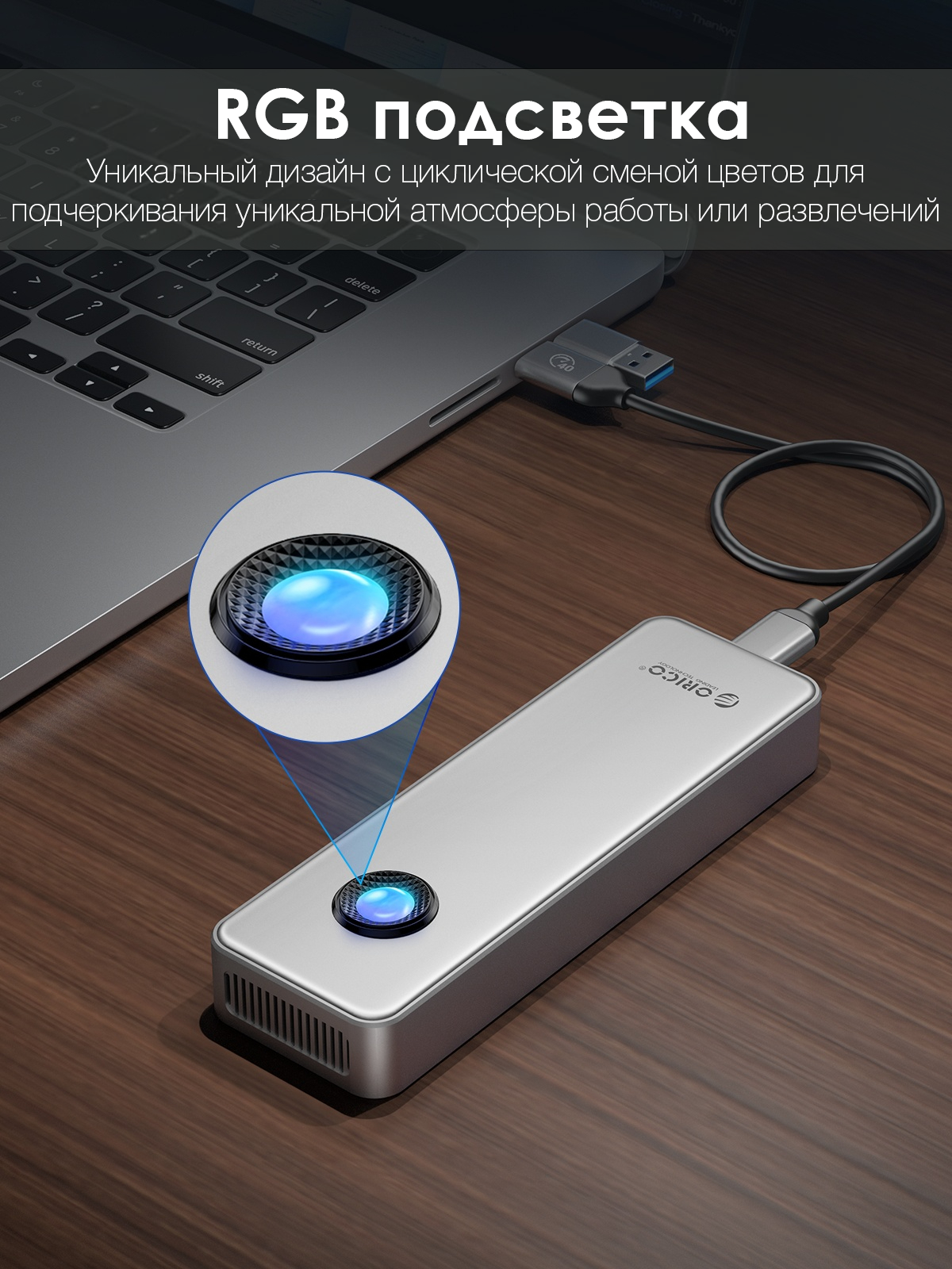 Внешний бокс 40 Gbps ORICO M.2 NVMe PCI-E 4.0 USB4 Enclosure OUM2-U4-SV (совместим с Thunderbolt) Серебристый интересное:
