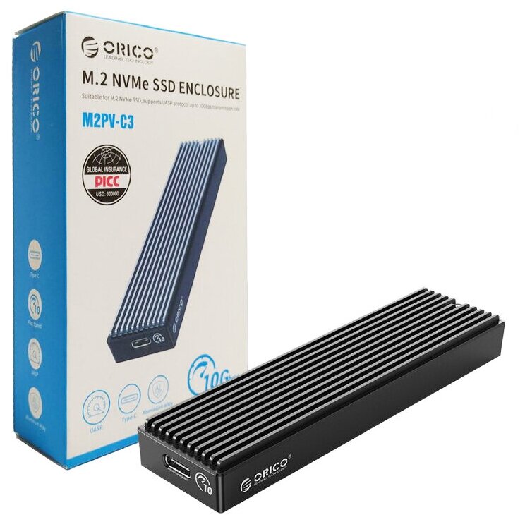 Переходник (внешний бокс) M.2 PCI-E NVME to USB 3.1 Type-C (Gen 2 10 Gbps) Orico Alu Wave Box интересное:
