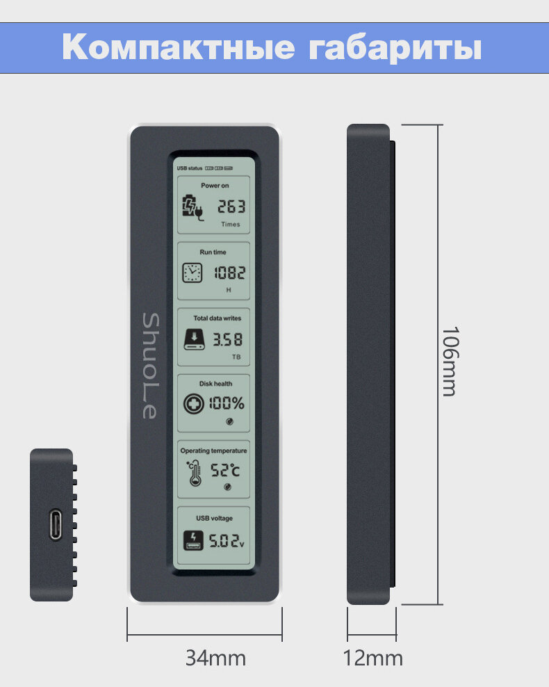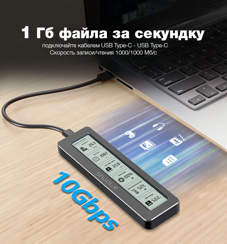 Универсальный переходник (корпус) ShuoLe Health Drive M.2 NVMe, M.2 SATA - USB 3.2 Gen2 с индикационным дисплеем состояния диска интересное: