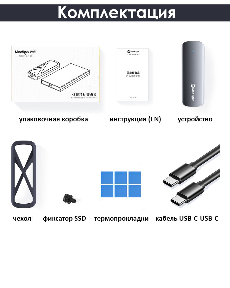 Корпус (переходник) для SSD M.2 NVMe Meetiger Shockproof Space Gray Box 10 - USB Type-C 3.2 Gen2 (10 Gbps) интересное: