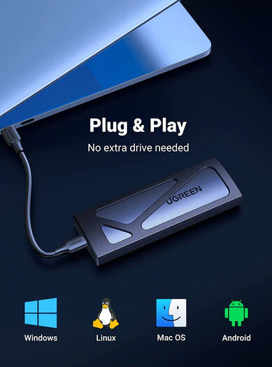 Универсальный переходник (внешний бокс) UGREEN M.2 NVMe PCI-E, M2 SATA NGFF - USB 3.2 Type-C Gen2 Tool Free Shockproof Box New Gen интересное: