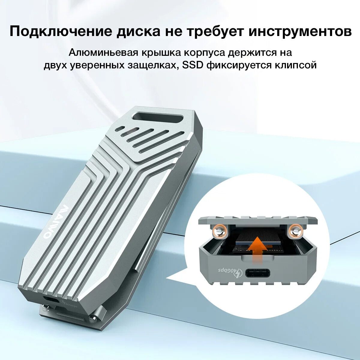 Внешний корпус (переходник) M.2 NVMe PCI-E - USB Type-C 4 (Thunderbolt 3, 4) MAIWO Unibody Cooling Grey Box (40 Gbps) интересное: