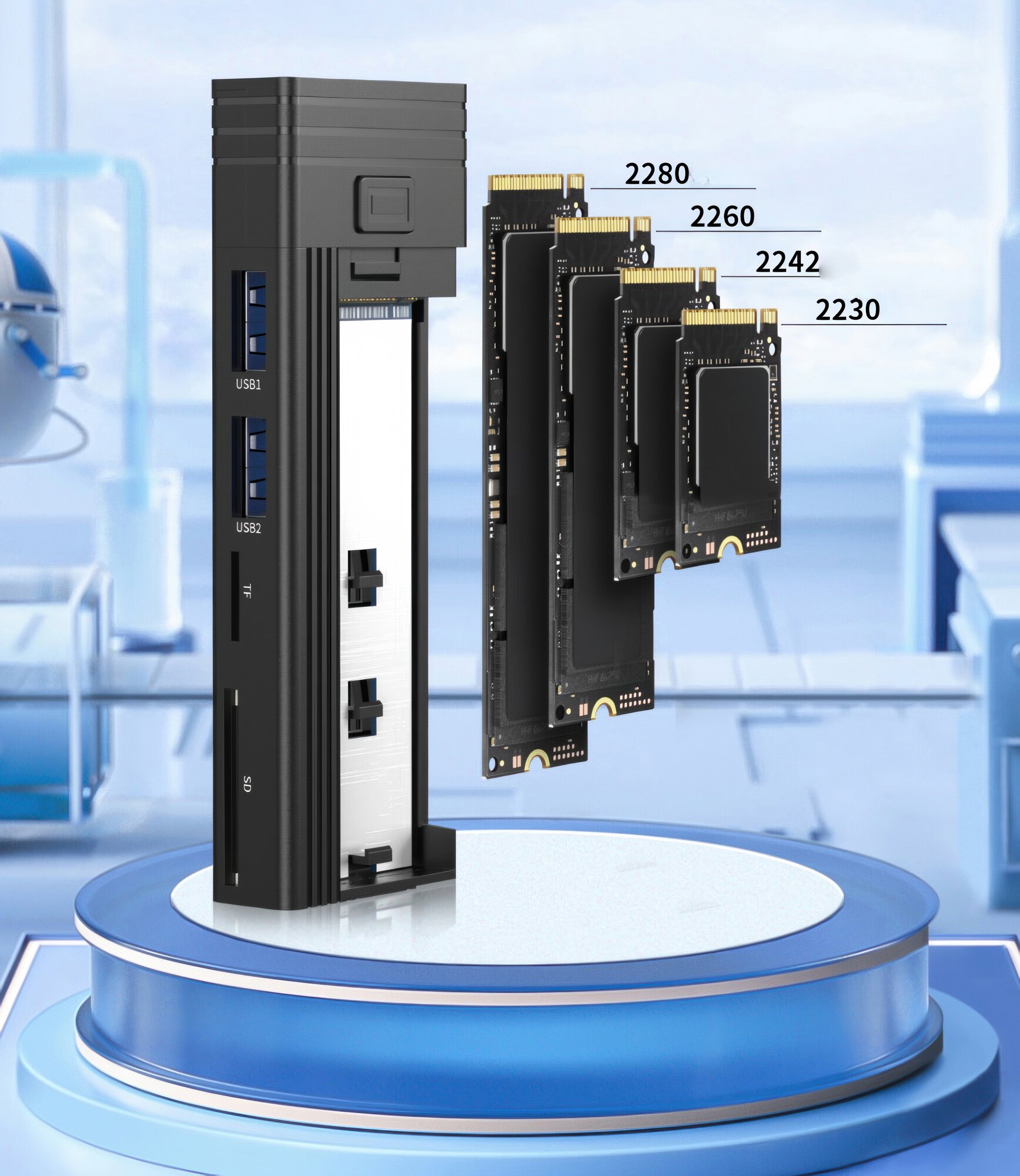 Корпус/док станция для накопителей + кардридер SD/TF YUCUN M182, M.2, USB3.2, nvme/sata, черный интересное: