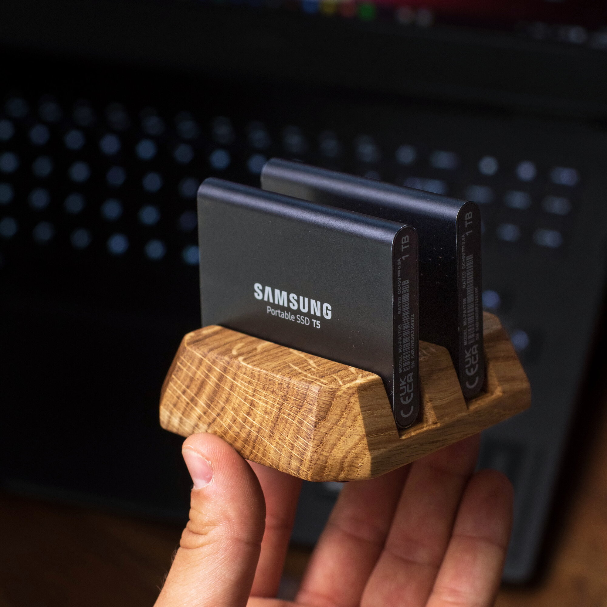 Купить Подставка из Ясеня портативных накопителя SSD, 2 слота 16 мм, Держатель накопителя с фото видео коллекцией