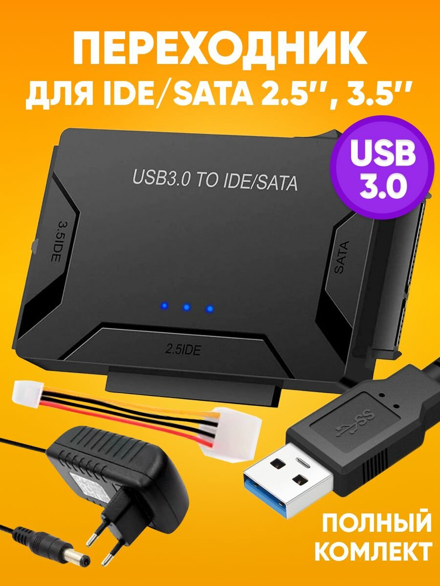 Универсальный переходник для жестких дисков 3 в 1 USB 3.0 - SATA / IDE 2.5" и 3.5" HDD ST31для SSD, CD-ROM, DVD-ROM интересное: