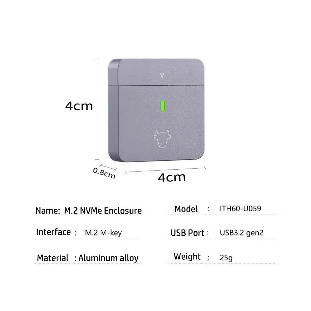 IRhasta алюминиевый корпус для M.2 NVMe SSD USB C 10 Гбит/с, 2230 NVMe Enclosure