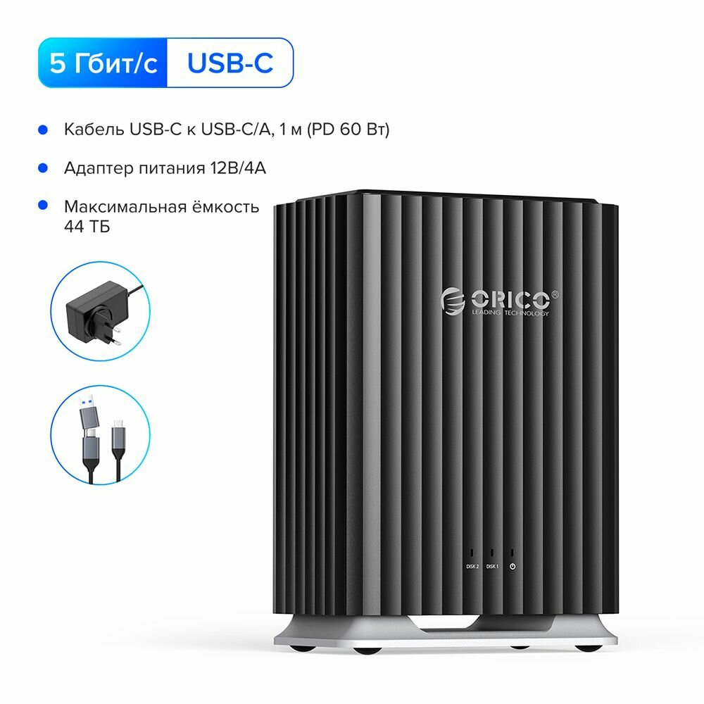 Купить Док-станция ORICO на 2 диска 2.5"/3.5" чёрный (ORICO-9728C3-EU-BK-BP)