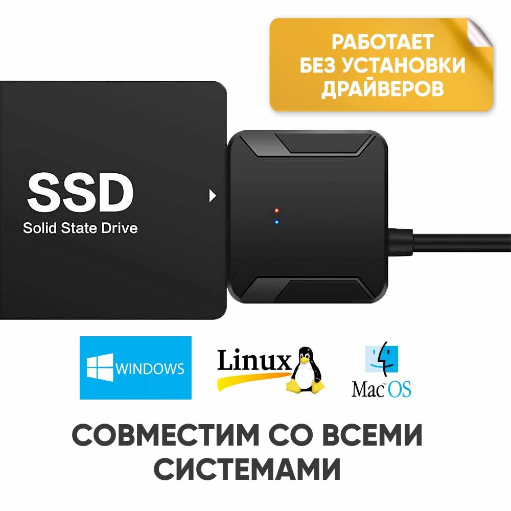 Купить Переходник SATA - USB 3.0 для HDD 2.5" 3.5", SSD USB 3,0, черный / Адаптер для жесткого диска, подключение USB-A USB-C