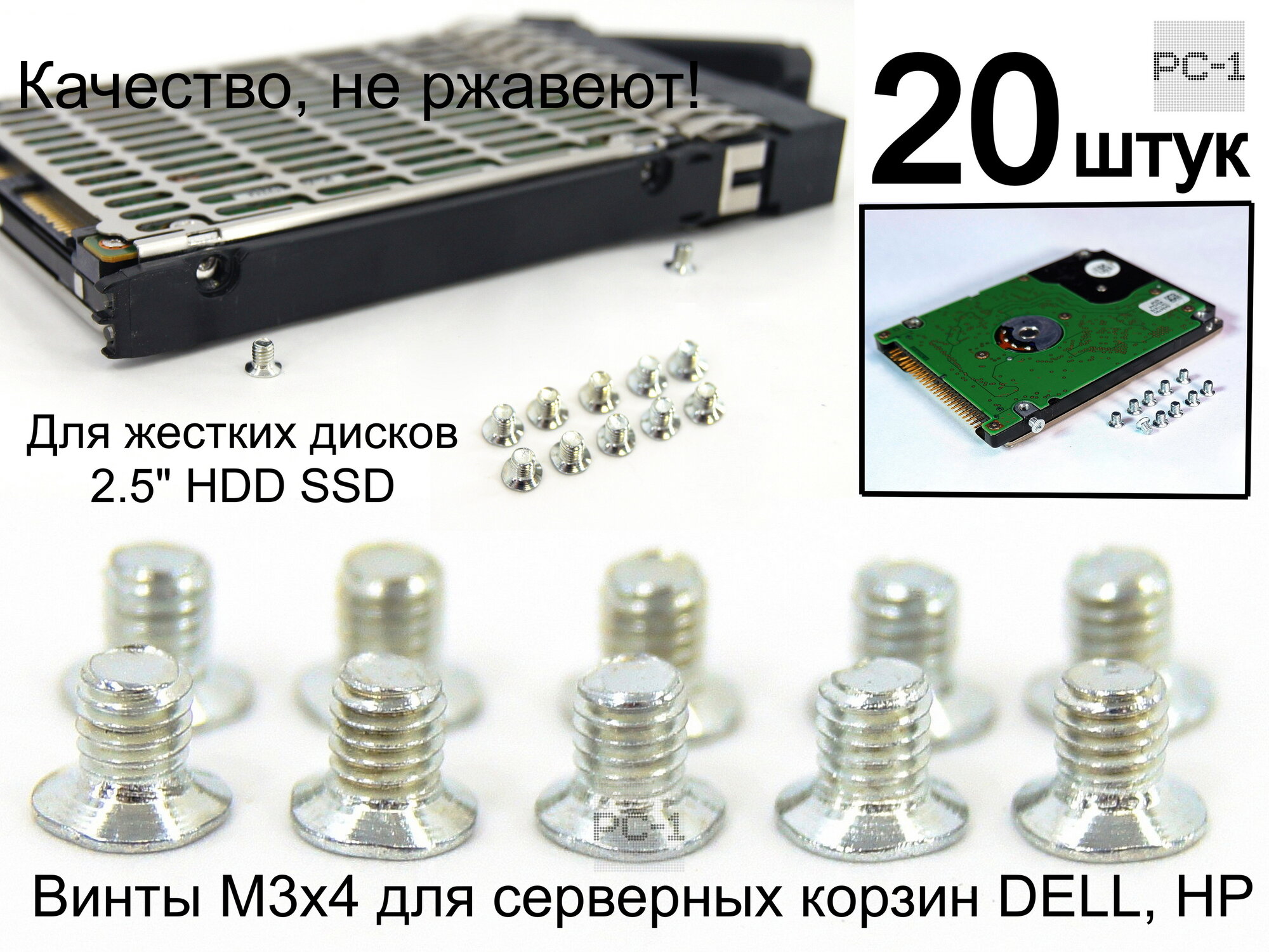 20шт Винты M3х4mm для жестких дисков 2.5" HDD SSD в серверные корзины ПК DELL HP с потайной головкой под конус Метрическая резьба длинна 4мм интересное: