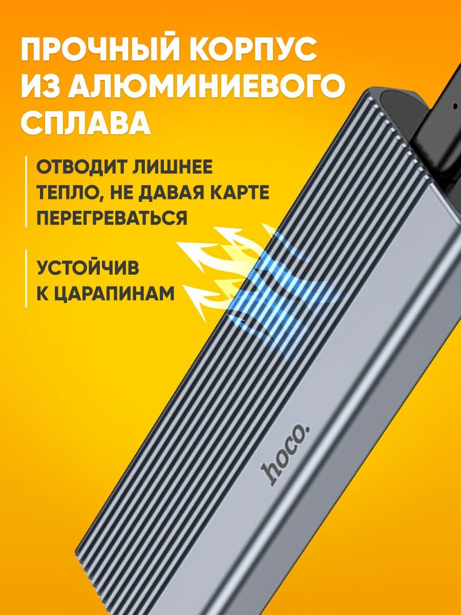 Корпус для жесткого диска M.2 SSD для SATA, 6 Гбит/с, Hoco HB47 черный, поддерживает накопители до 4Тб интересное: