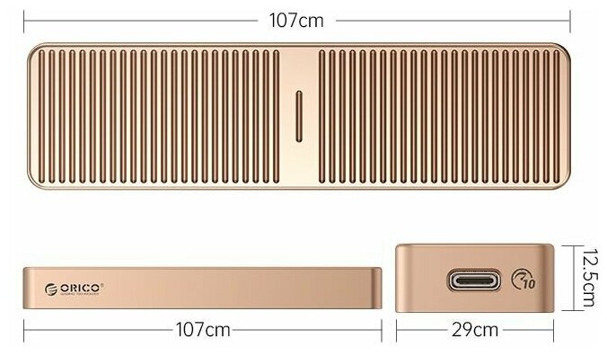 Корпус для SSD M.2 NVMe/NGFF(SATA), USB3.1 Gen2 Type-C (10 Гбит/с), Orico FV25C3-G2, розовое золото интересное: