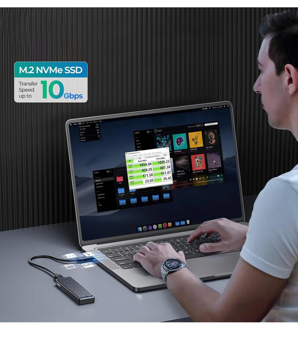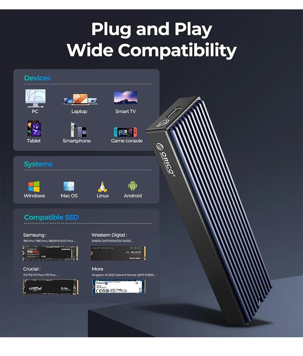 ORICO M.2 SATA NVMe корпус для SSD USB-C, NVMe with Bag