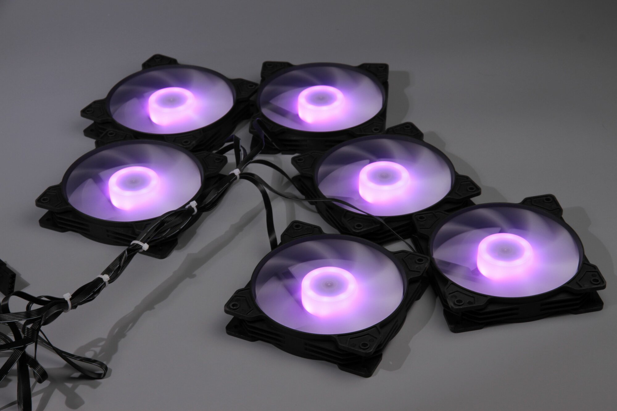 Вентиляторы ARGB для корпуса 120мм подсветкой , набор 6 кулеров+крепеж+контроллер с пультом