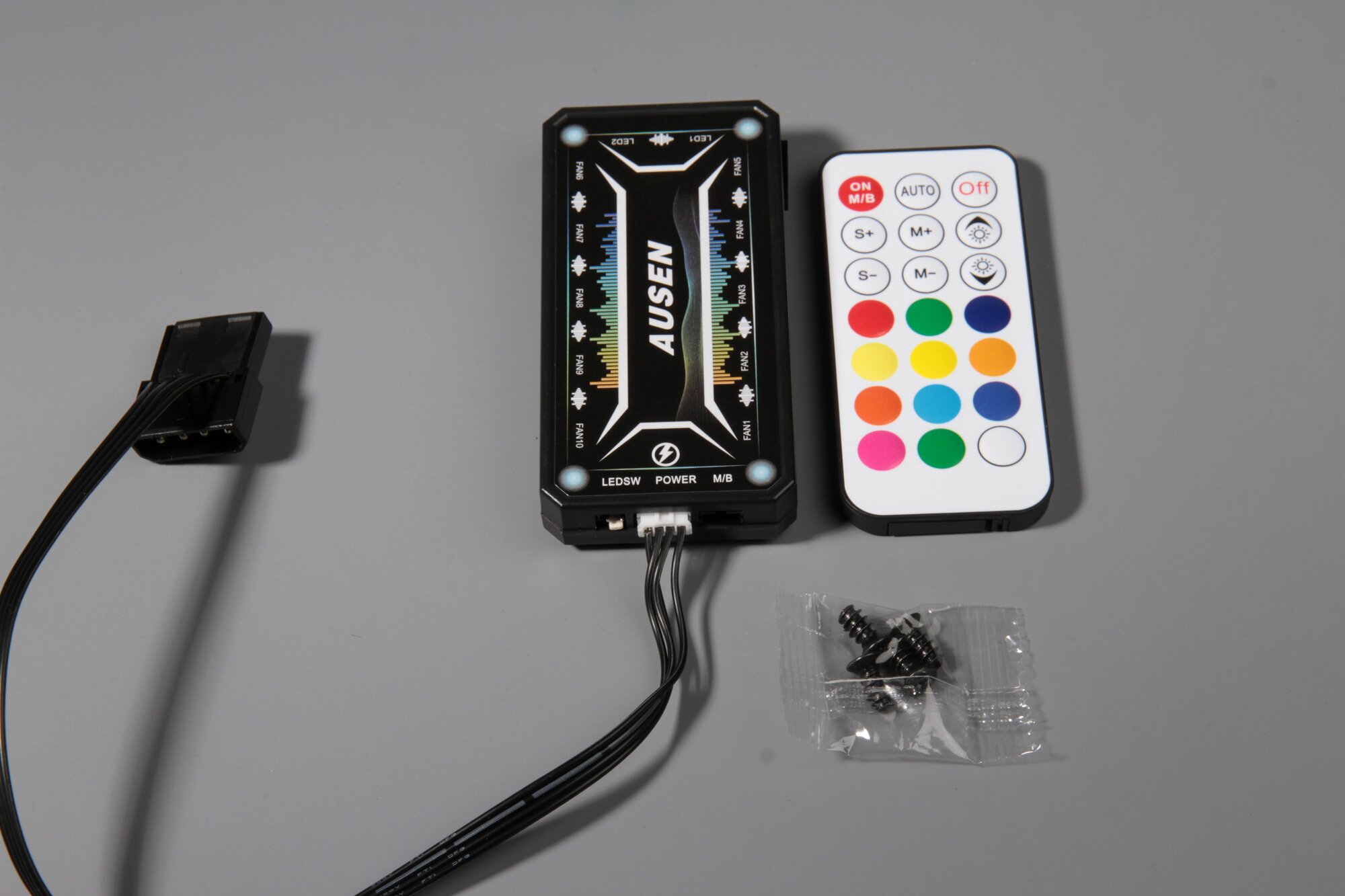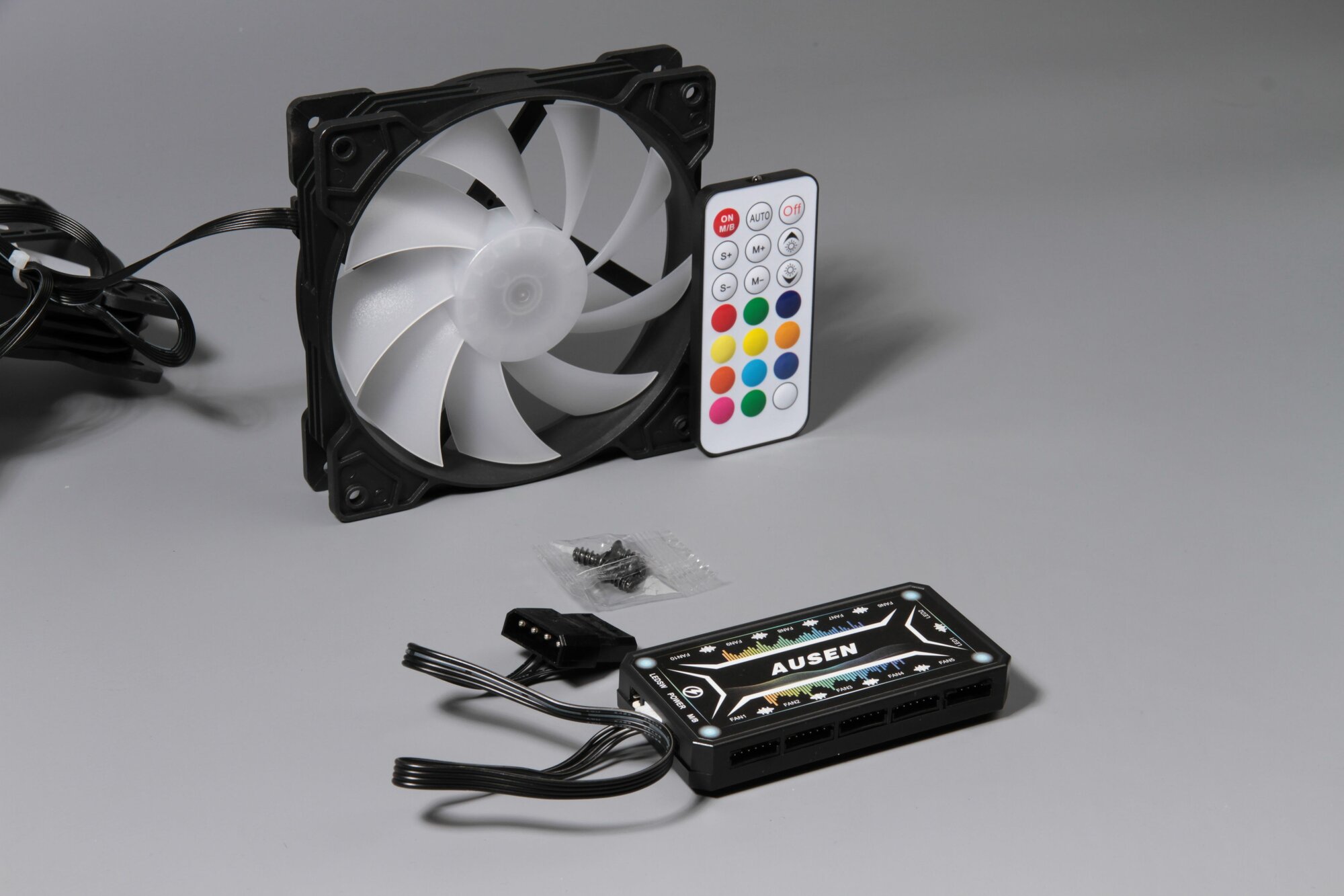 Вентиляторы ARGB для корпуса 120мм подсветкой , набор 5 кулеров+крепеж+контроллер с пультом