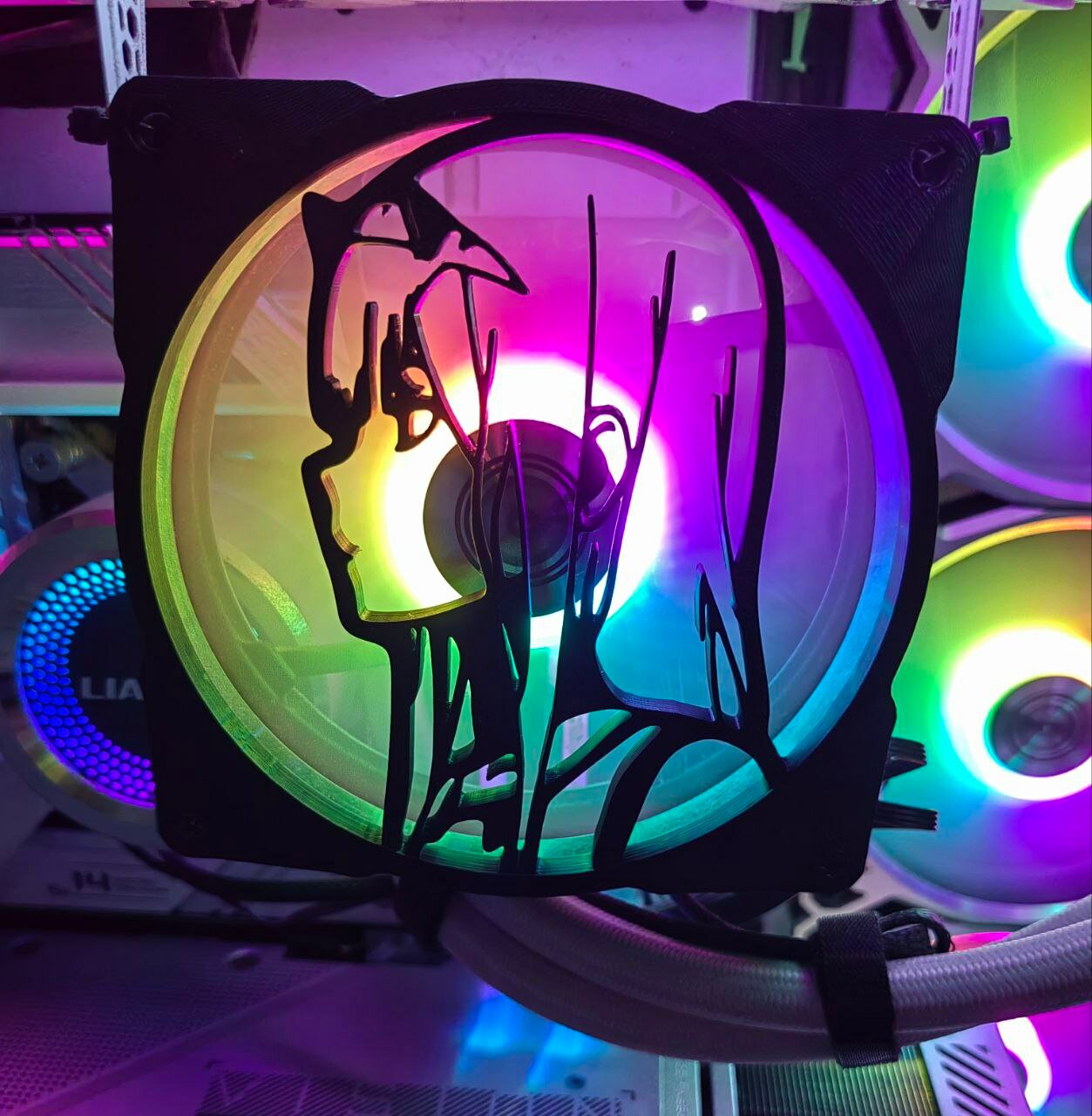 Защитная решетка вентилятора ПК 120 мм. Демоница на качелях