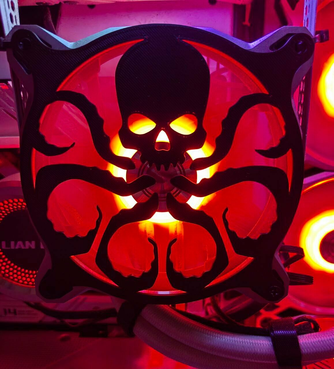 Защитная решетка вентилятора ПК 120 мм. Череп в цилиндре.