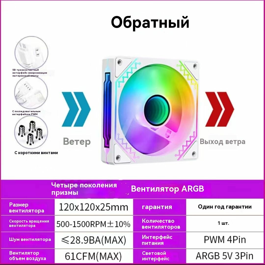 Вентилятор для корпуса-ARGB-120MM-Выдув-белый,1PCS