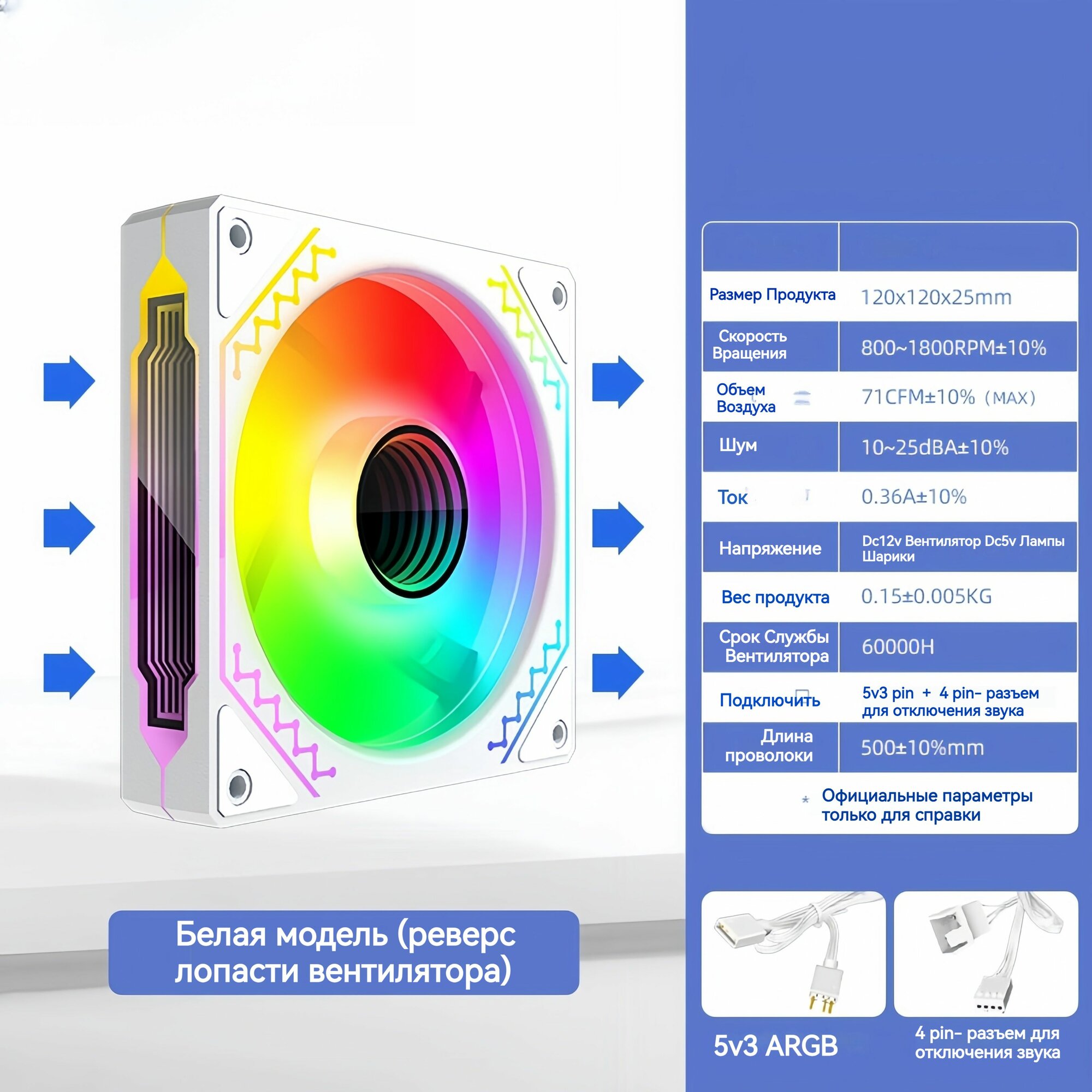 Вентилятор для корпуса-ARGB-120MM-Выдув-белый,1PCS