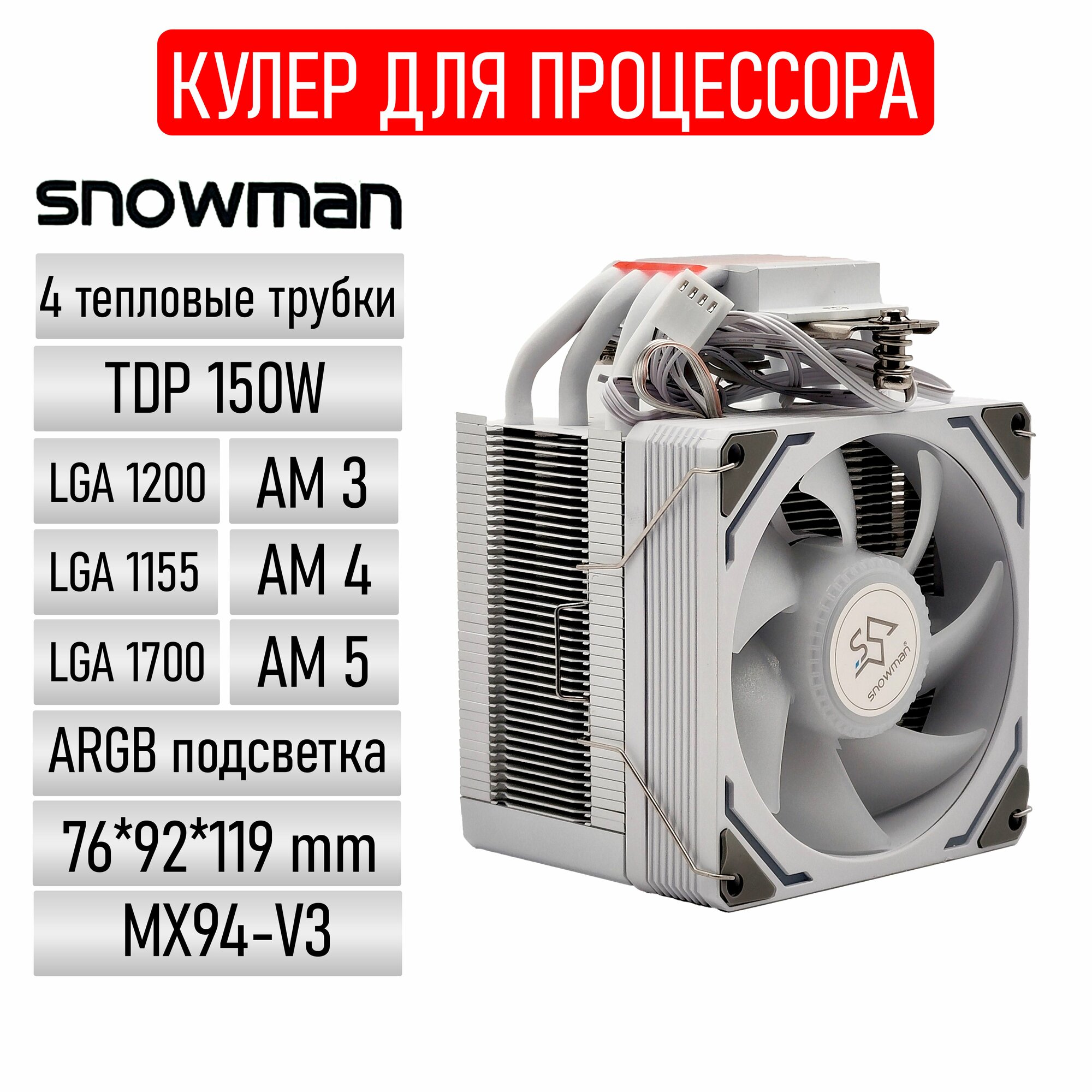 Кулер для процессора Bingman с подсветкой MX94-V3 ARGB белый интересное: