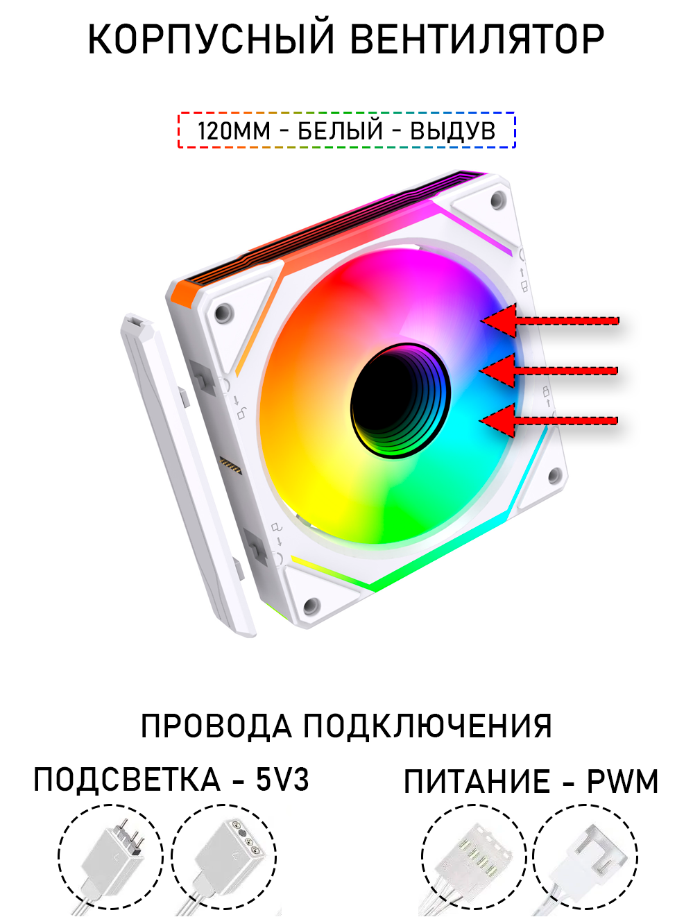 СохранитьМодульный вентилятор - 5PRO Inline - 120мм, A-RGB, PWM+5v3, Комплект из 3 штук, белый, на выдув из корпуса интересное: