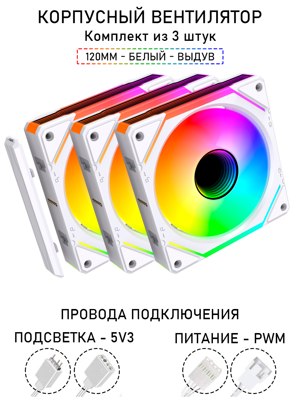 Купить Модульный вентилятор - 5PRO Inline - 120мм, A-RGB, PWM+5v3, Комплект из 3 штук, белый, на выдув из корпуса